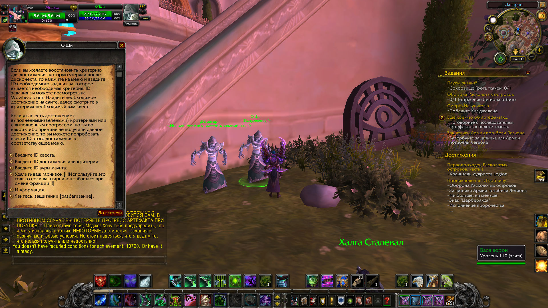 | Description | Не засчиталось выполнение сюжетного квеста "Испытание мощи" в Штормейме. Взять заново нельзя, отменить тоже. Можно выдать квест заново или засчитать достижение? Выдаёт этот квест Йотнар. Квест необходим для получения достижение "Врайкул стори, бро!" | ||||