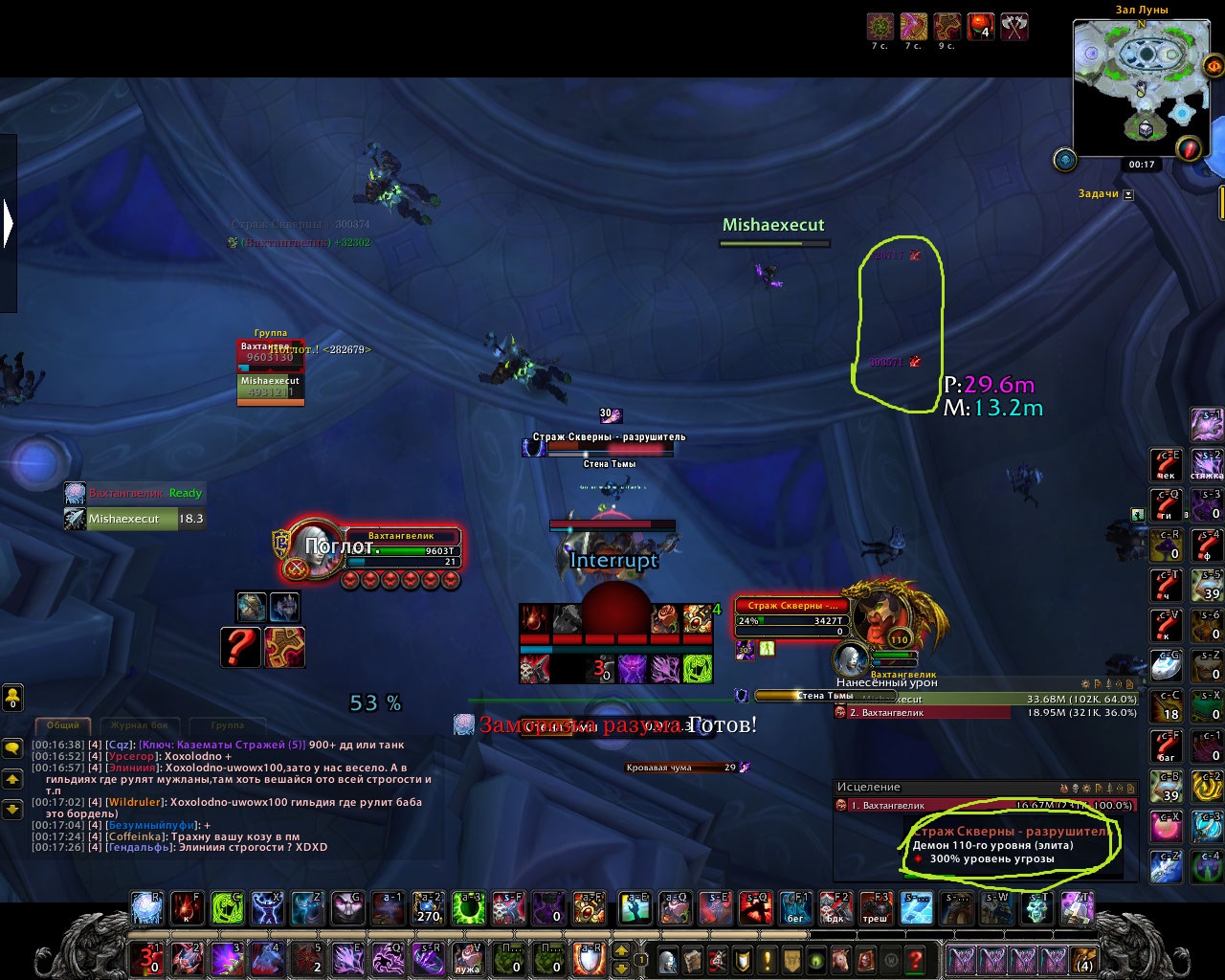 на видео видно что угроза 100%, после нажатия вскипания 200% если какие то проблемы включите скорость 0.25. Вместо того чтобы искать причину нечего не делать лучше бы искали в чем проблема. Если у нас бдк под хотами рдру будет соберать треш фул пак убежит на рдру просто одного вскипания будет не достаточно и иногда и двух, есть шансы только под руничкой стабильно собирать. На видео лужа + вскипание 200% угрозы, у нас лужа + вскипание 100%. Вот очередной пруф https://www.youtube.com/watch?v=bQdvY1_hrkY 0 20. бдк заходит в пак под хотами и дру еще дает доту и треш не срываеться с 1го вскипания. У нас я на рдру срываю с любого бдк и без рунички не забрать . только таунтом. Так же если шок паладина критует на 10кк+