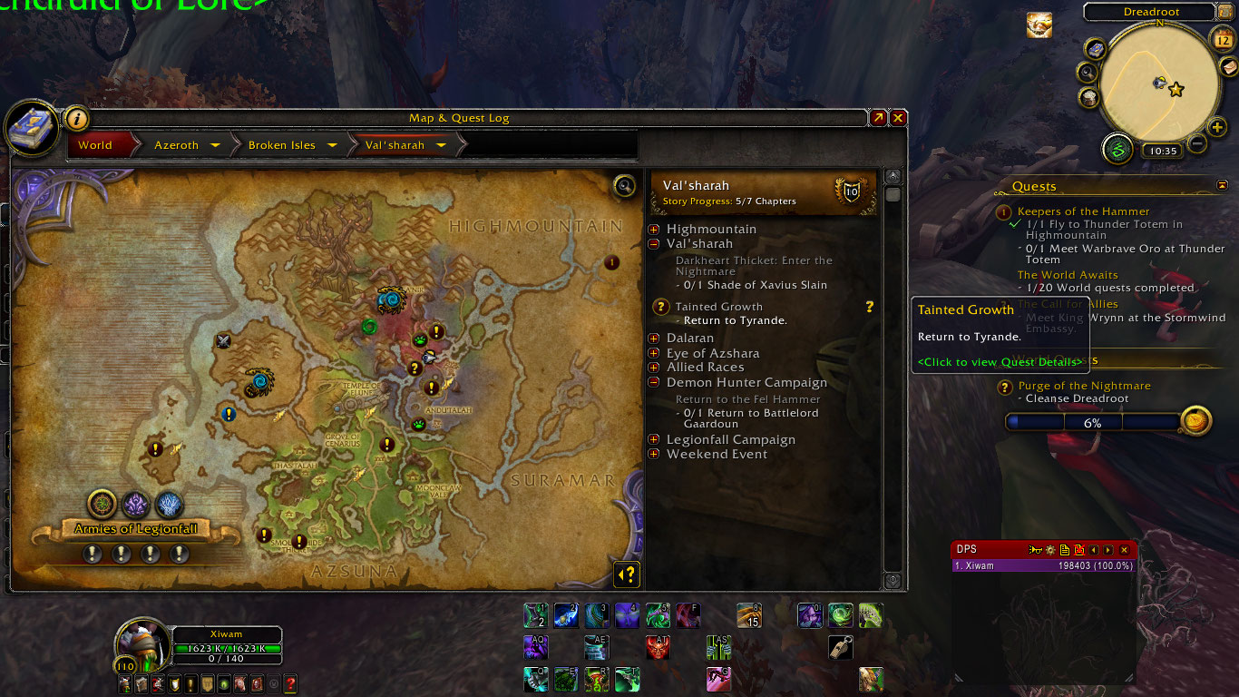 | Description | Cant turn in quest Tainted Growth, Val Sharah https://www.wowhead.com/quest=41891/tainted-growth | ||||