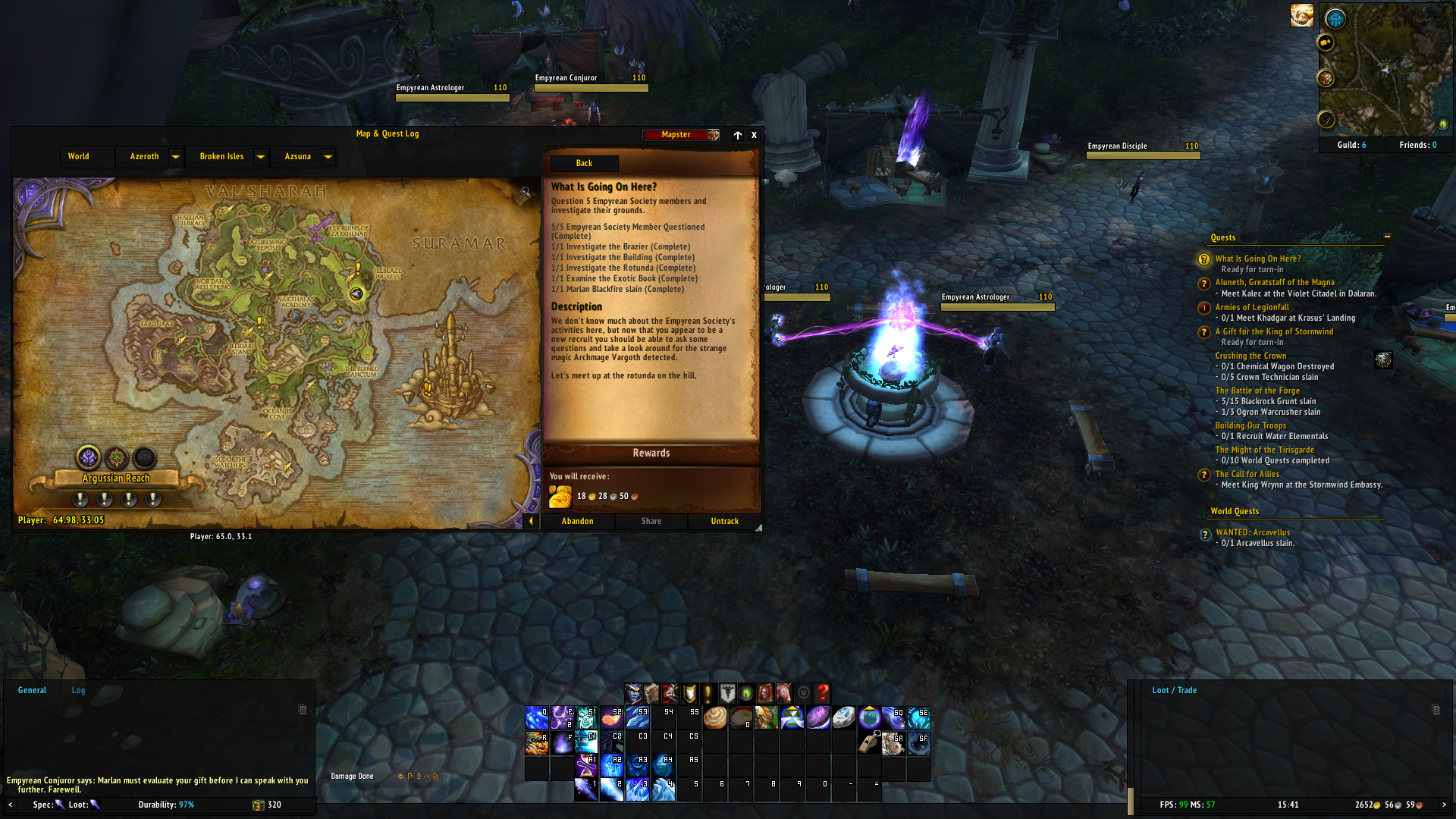 I recorded a video for you, quest work https://youtu.be/kyNyw4oOxbg When you take the quest you have https://ru.wowhead.com/npc=106656 |
