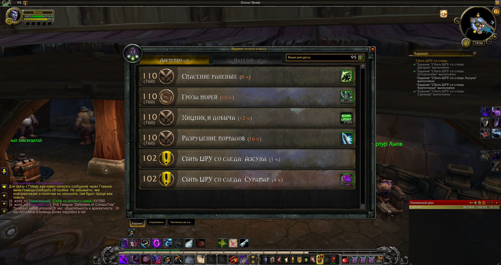 | Description | https://ru.wowhead.com/quest=42684/сбить-шру-со-следа - В данном квесте багаются такие задания, как "Задание "Сбить ШРУ со следа: Азсуна" выполнено Задание "Сбить ШРУ со следа: Крутогорье" выполнено". Они либо есть, но невозможно выполнить, либо их вообще нет. Оплот невозможно пройти без данного квеста. | ||||