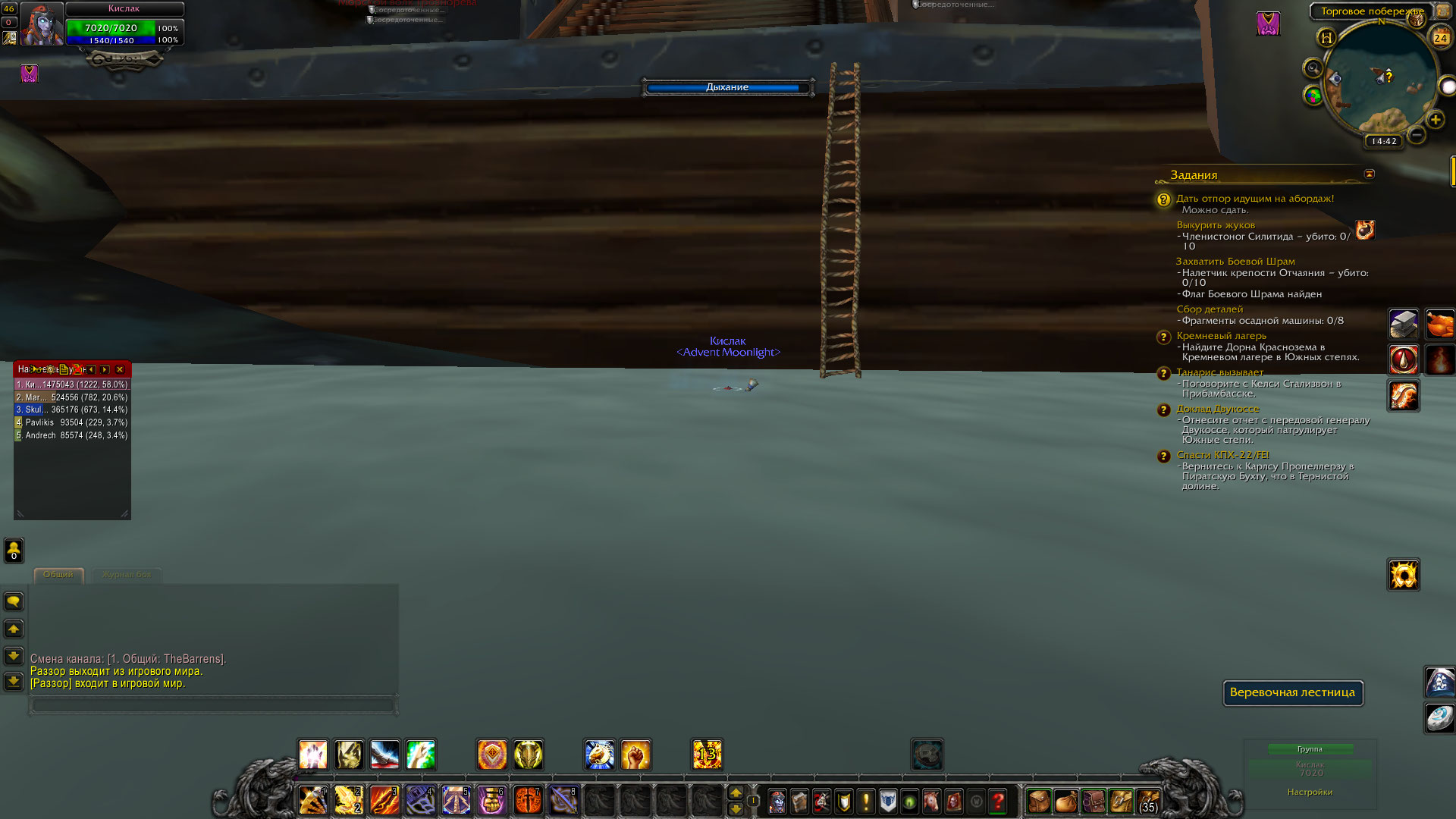 Здравствуйте, квест выполнить можно поговорите с https://ru.wowhead.com/npc=38619/%D0%B0%D0%B4%D0%BC%D0%B8%D1%80%D0%B0%D0%BB-%D0%BE%D0%B1%D1%80%D0%B8 он вас переместит на корабль. На счет https://ru.wowhead.com/object=216077/%D0%B2%D0%B5%D1%80%D0%B5%D0%B2%D0%BE%D1%87%D0%BD%D0%B0%D1%8F-%D0%BB%D0%B5%D1%81%D1%82%D0%BD%D0%B8%D1%86%D0%B0 не работает, а должен кидать на корабль Передаю разработчику |
