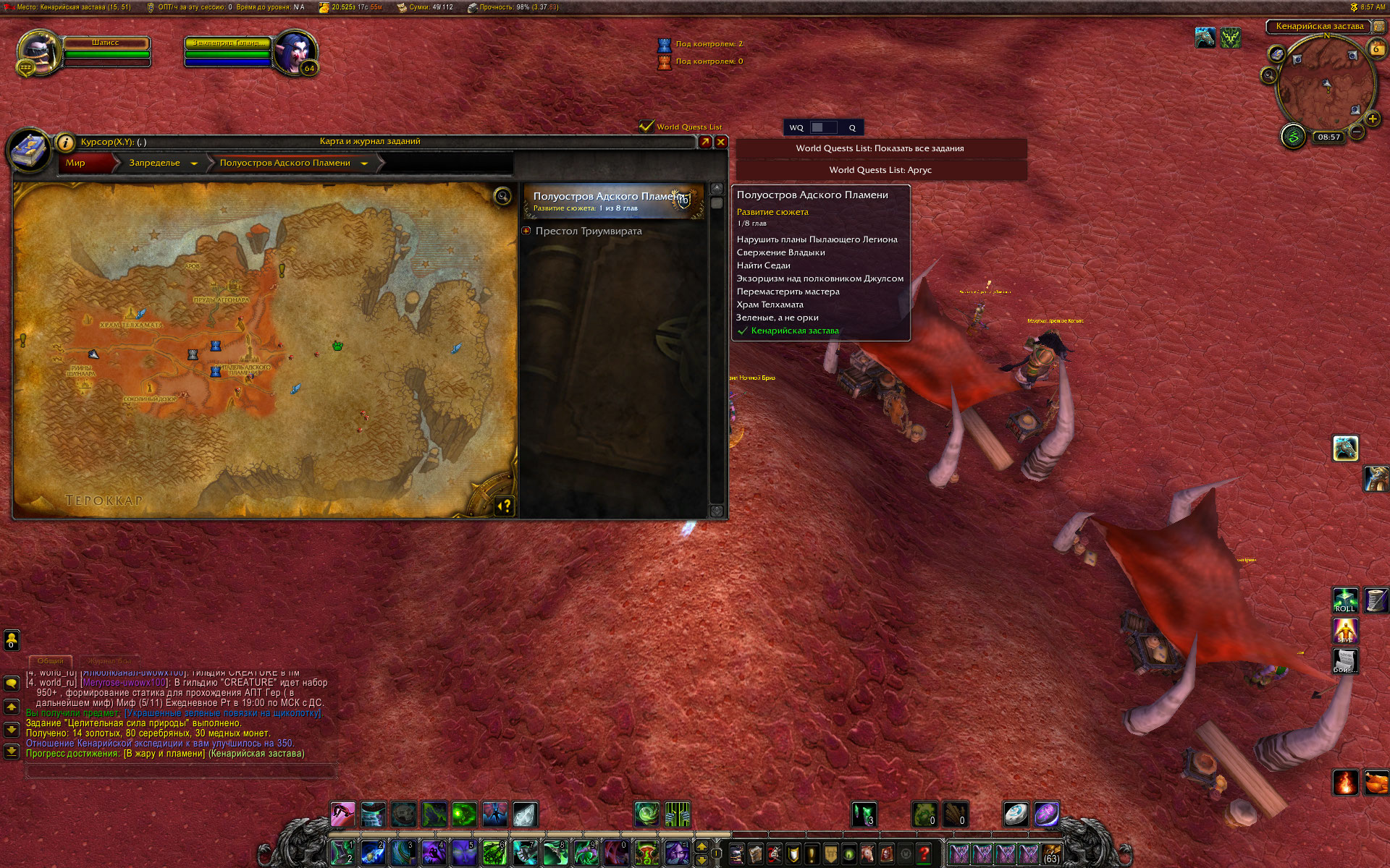 Здравствуйте, скачайте аддон quest completist и скиньте мне сриншот квестов полуострова Адского пламени