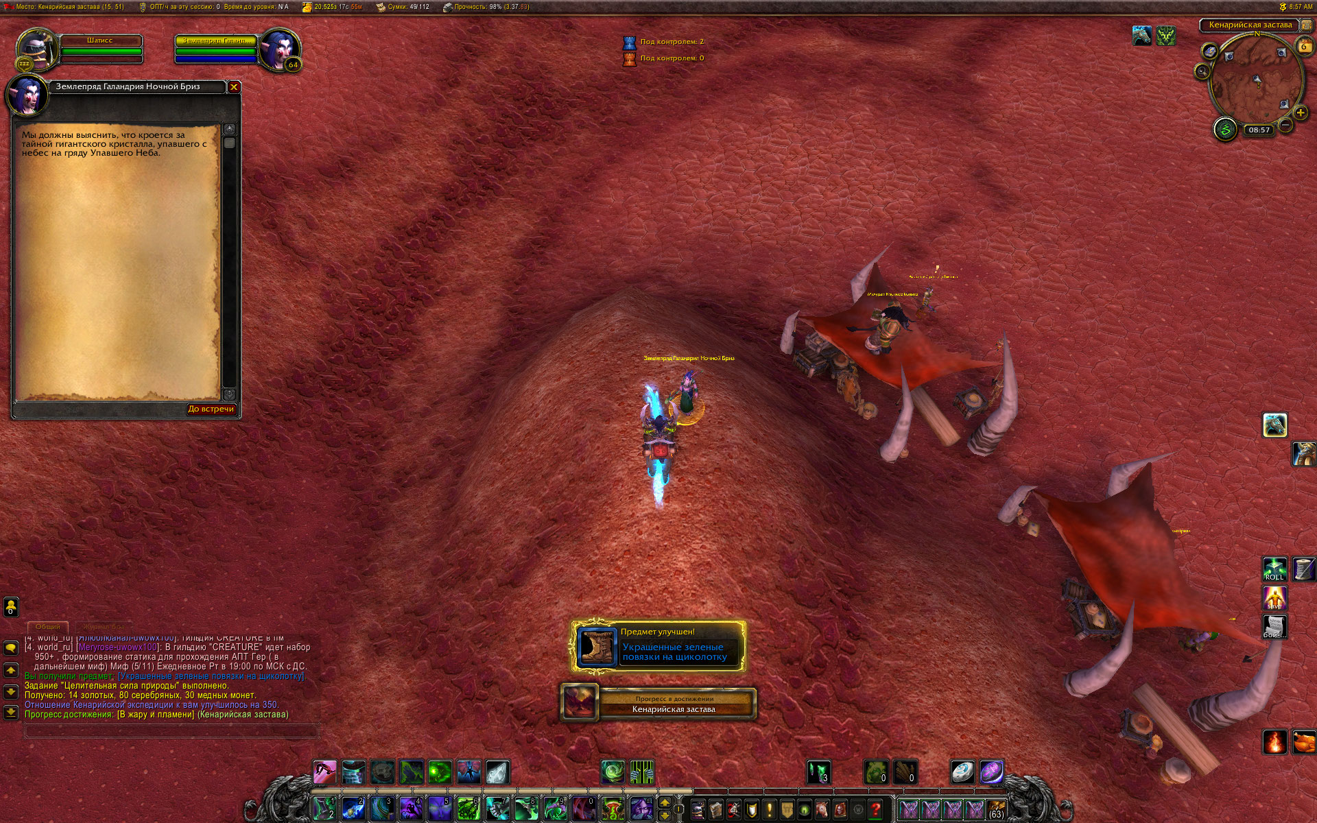 1. достижение id1189 https://ru.wowhead.com/achievement=1189/%D0%B2-%D0%B6%D0%B0%D1%80%D1%83-%D0%B8-%D0%BF%D0%BB%D0%B0%D0%BC%D0%B5%D0%BD%D0%B8#comments вся квестовая цепочка "Кенарийская застава" выполнена, в ачив не засчитывается.