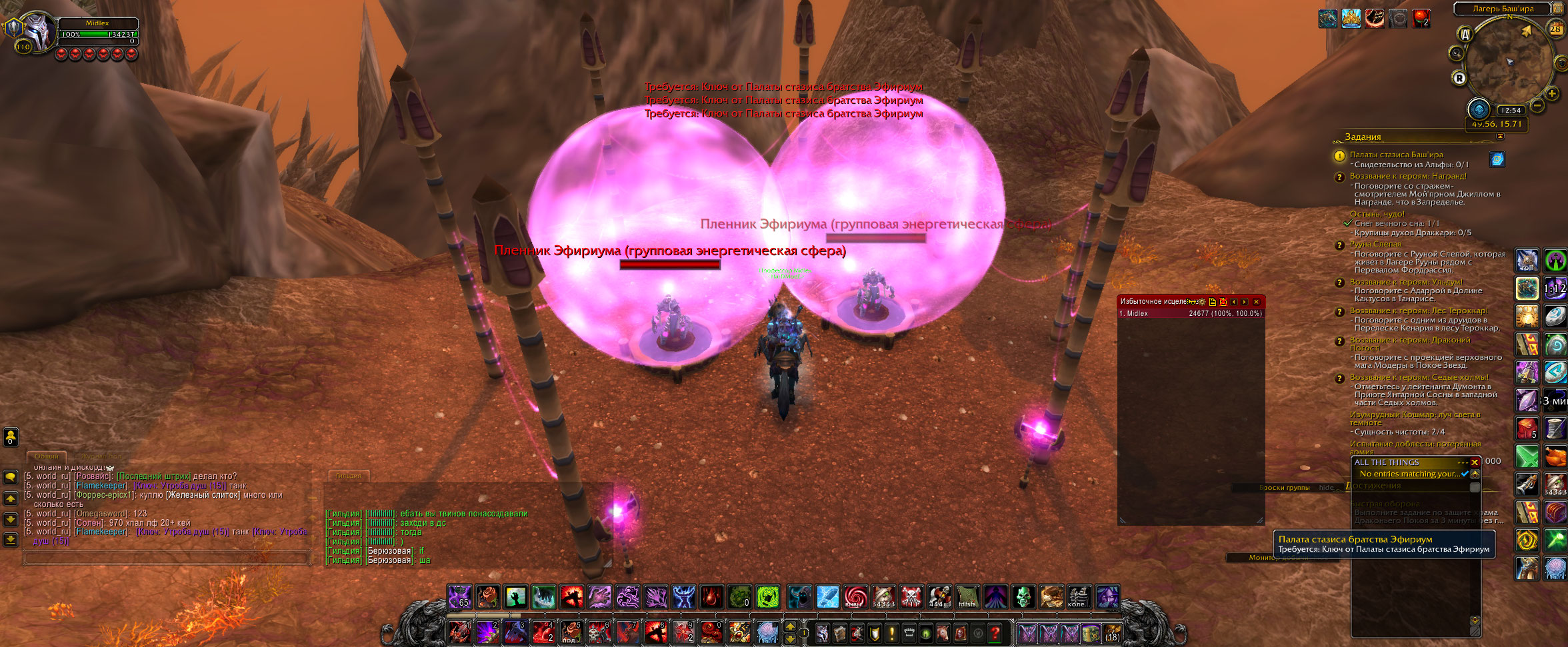 | Description | не работает квест https://ru.wowhead.com/quest=10974/%D0%BF%D0%B0%D0%BB%D0%B0%D1%82%D1%8B-%D1%81%D1%82%D0%B0%D0%B7%D0%B8%D1%81%D0%B0-%D0%B1%D0%B0%D1%88%D0%B8%D1%80%D0%B0 При применении Таблички-ключ должен вылезать враждебный моб с которого лутается квестовый итем. У нас моб не появляется, ключ должен применяться ко всем шарам стазиса (у нас применяется только к одному конкретному шару). | ||||