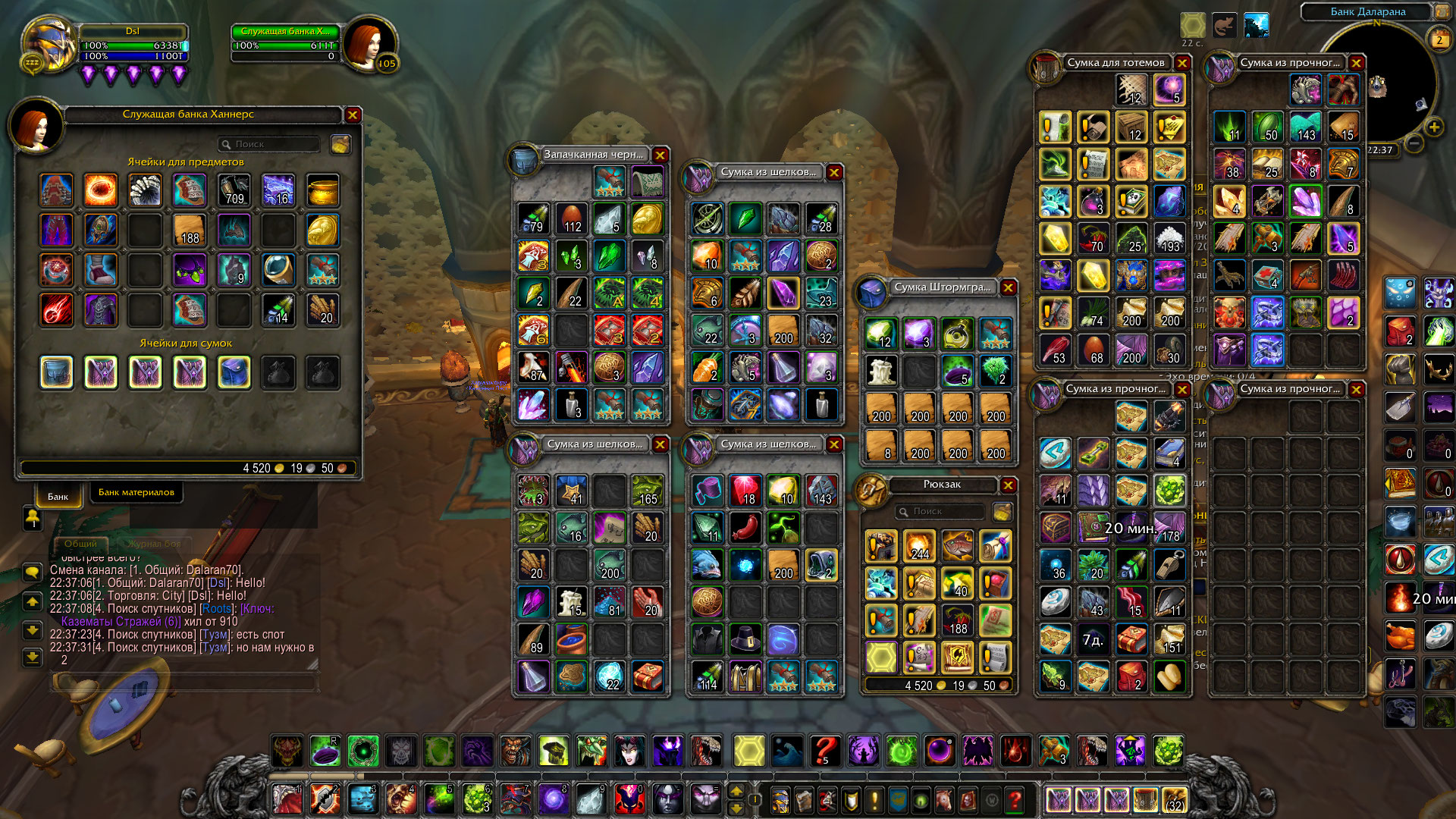 скрин всех имеющихся сумок включая те что в банке WoWScrnShot_020219_223732.jpg (764,102 bytes) |