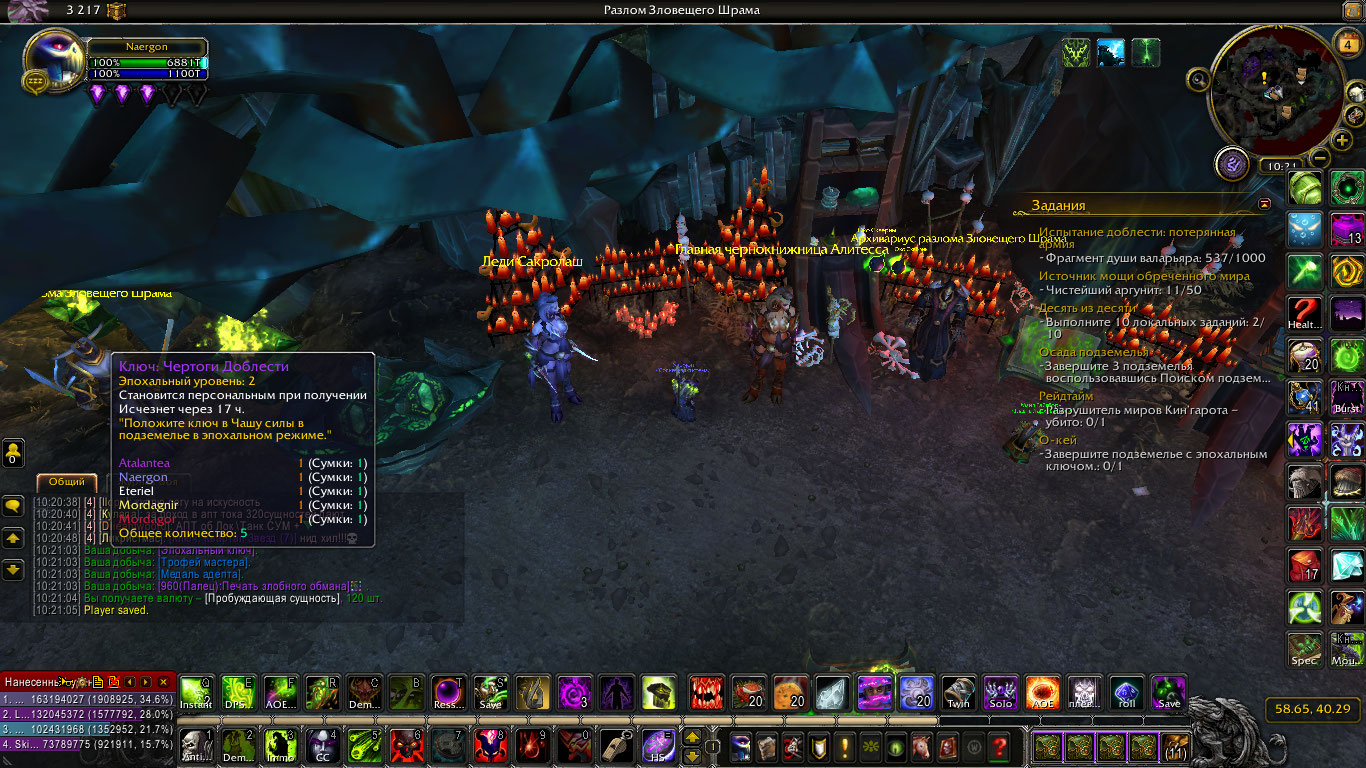 | Description | Сегодня с недельного сундука в оплоте всем выпадает 2 ключ, вне зависимости от пройденного на прошлой неделе, лут при этом учитывает пройденный ключ (по крайней мере у меня за 15+ ключи выпали 960+ шмотки с надписью "эпохальный 15"). Причина проблемы, вероятно, в том, что сбросилась вся статистика ключей до сегодняшнего дня, она не отображается ни в рекорде недельном, ни по команде ".ch", ни в личном кабинете - там только ключи за сегодняшний день | ||||