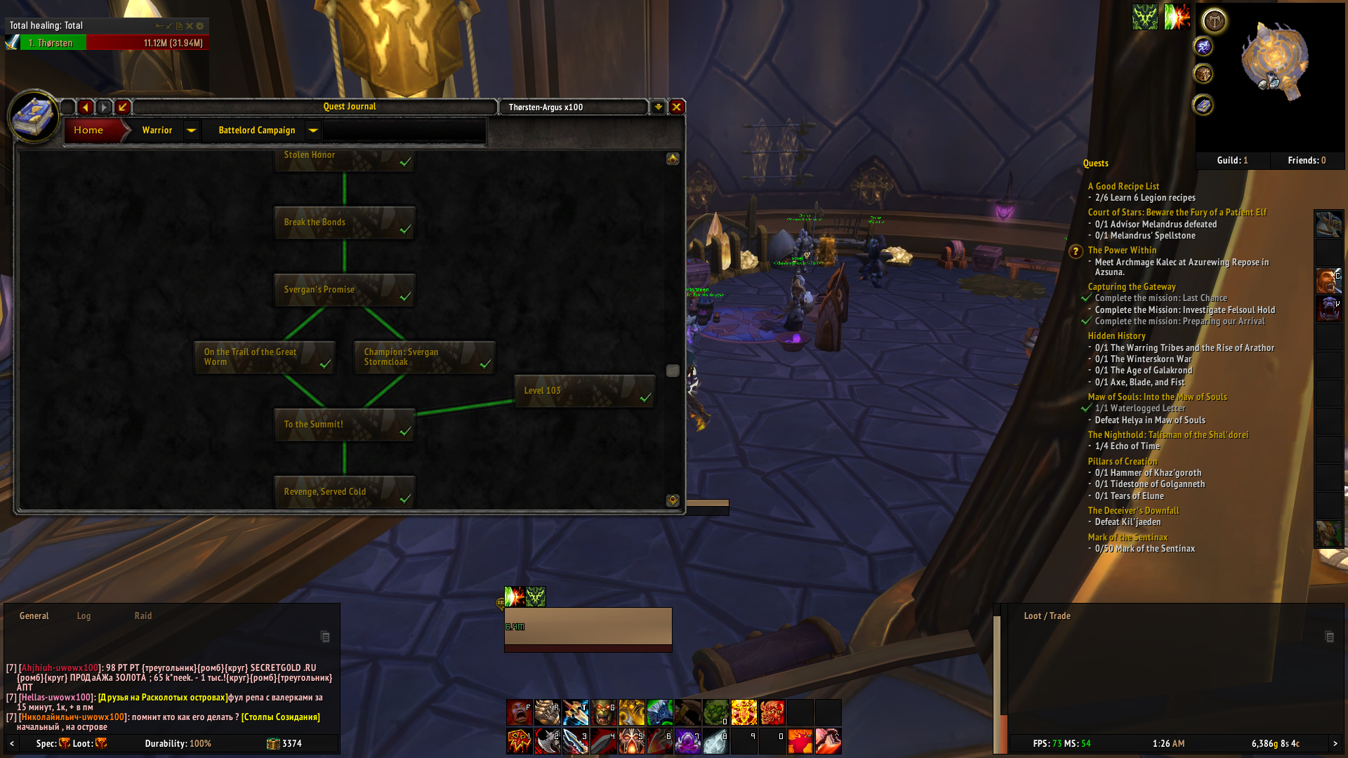 Hello. Download Addon BtWQuest and BtWQuest: Legion and look Warrior Campaign https://www.wowhead.com/quest=43577 Quest work. I recorded a video for you Need level 110 companions https://youtu.be/u25ClJHWK9w |