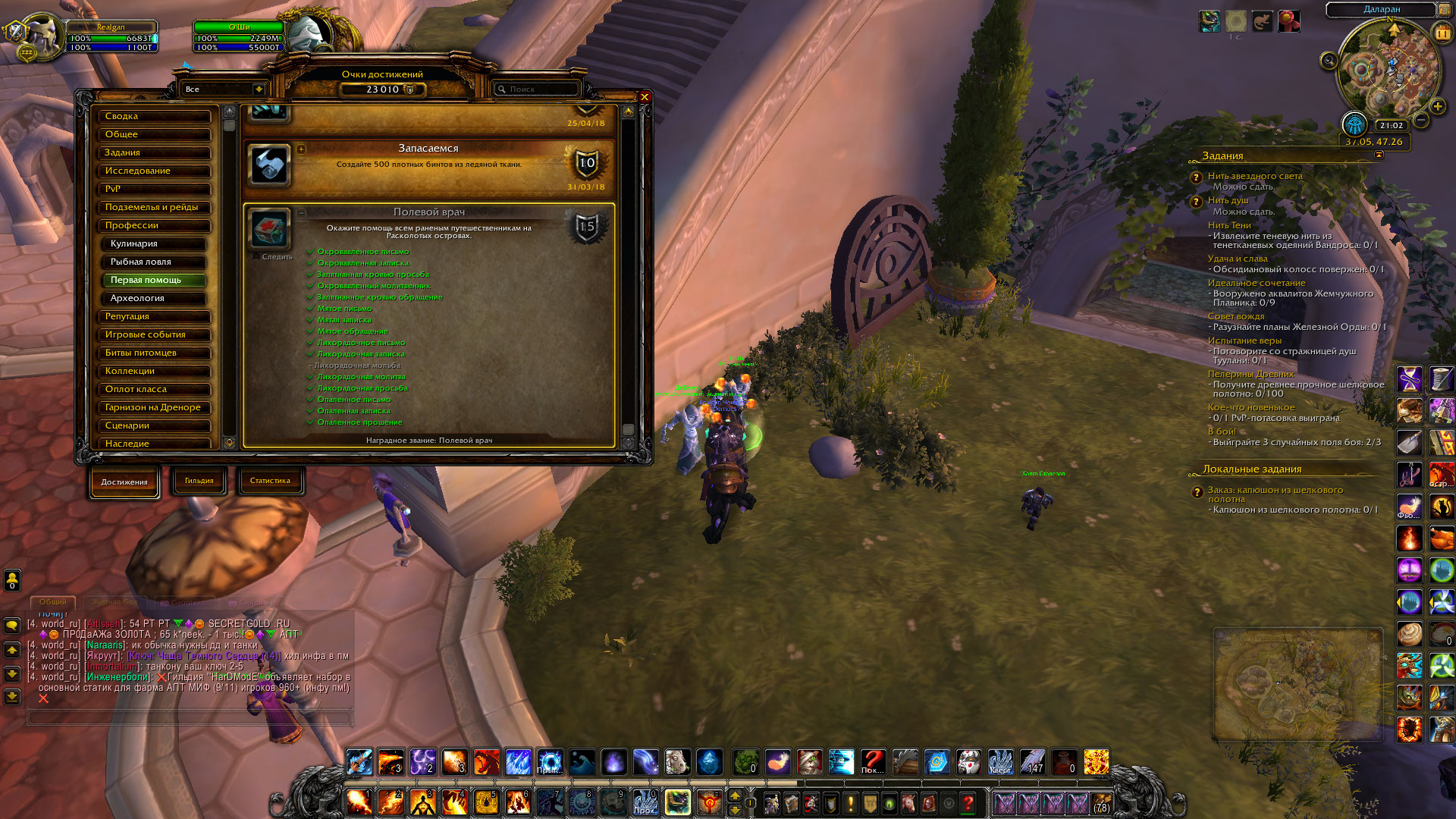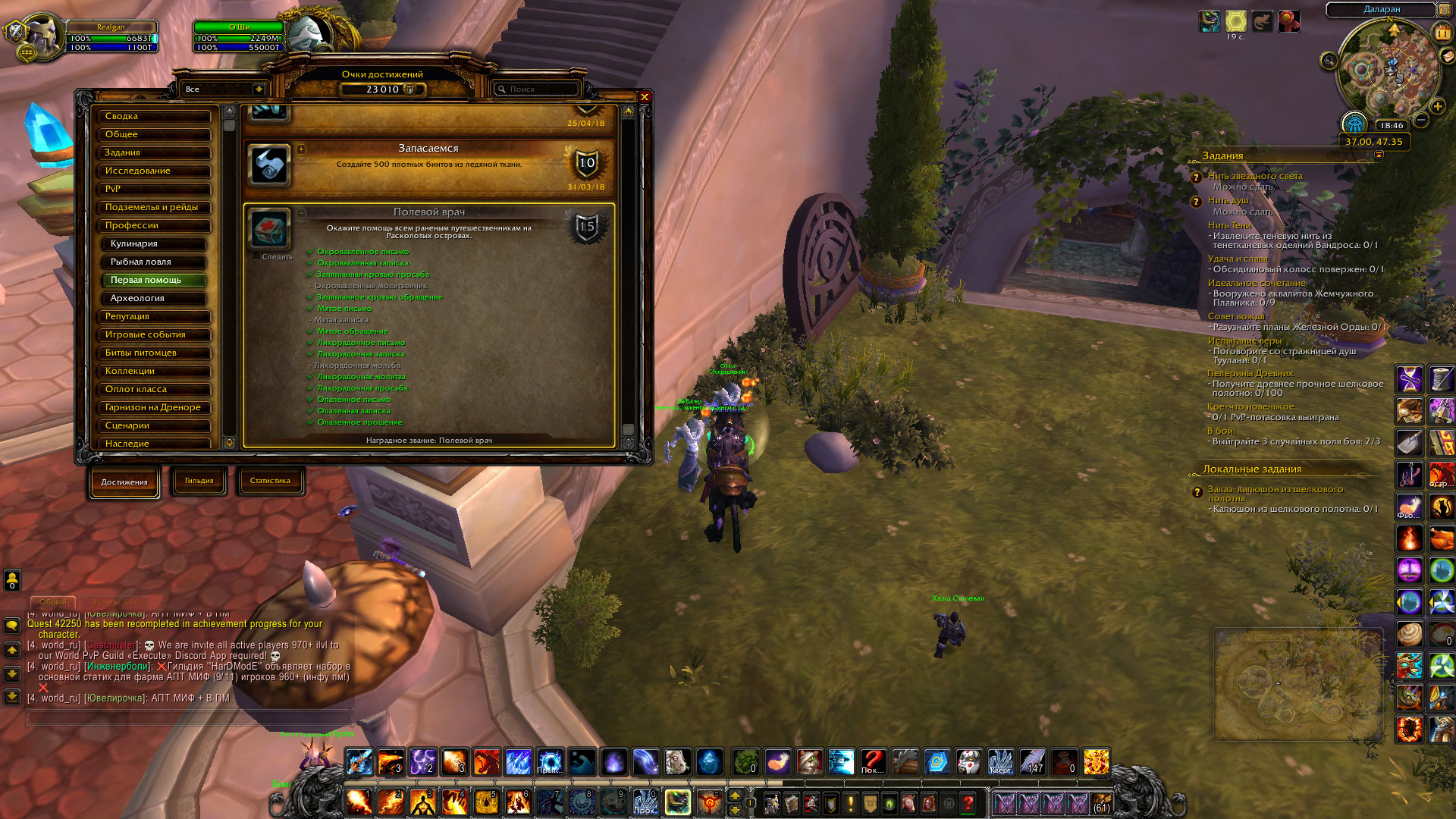 Здравствуйте, квест действительно сдан, НО тогда помогите разобраться, защитывает у вас критерий в ачиве? у меня на скрине нет, Оши не помог попробовал и в ачивы у него вбить обе ачивки 11138 и 11139 и квест попробовал перезочесть. Что мне тогда делать? или достижение не рабочее? WoWScrnShot_031120_184639.jpg (627,392 bytes) |