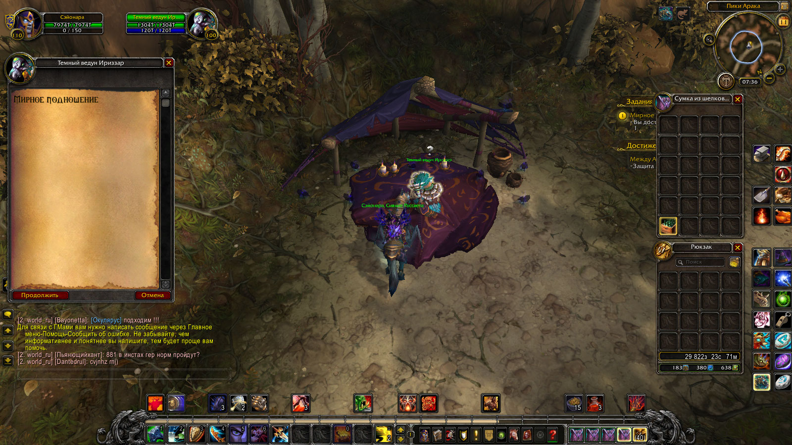 Да и от безделья я пределал все задания доступных значков на этой локации .А вот задание -Снова здорово ведет к пустому месту-там нет никого только знак вопроса что могу сдать квест WoWScrnShot_031120_141649.jpg (455,425 bytes) |