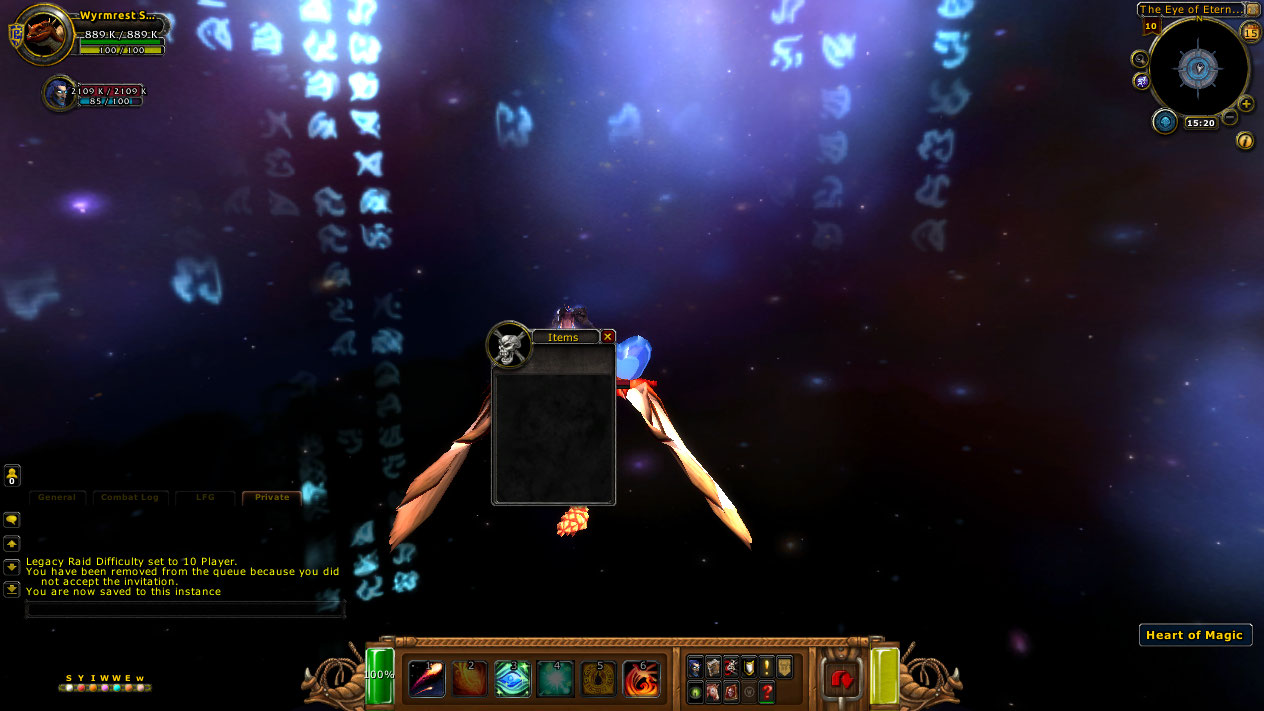 | Description | После убийства Малигоса на месте смерти появляется кристал в виде сердца в котором должна лежать добыча с босса, но при открытии данного "сундука" добычи нету. Добычи нету как в рейде на 10 игроков так и в рейде на 25 игроков. | ||||