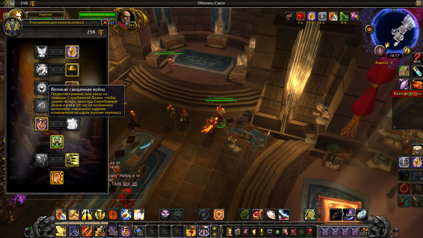 | Description | нет нпс для того чтоб получить приказы для завершения локального задания раз в 18ч, у вара и лока это работает, у паладина нет нпс, у меня славная компания выполнена | ||||