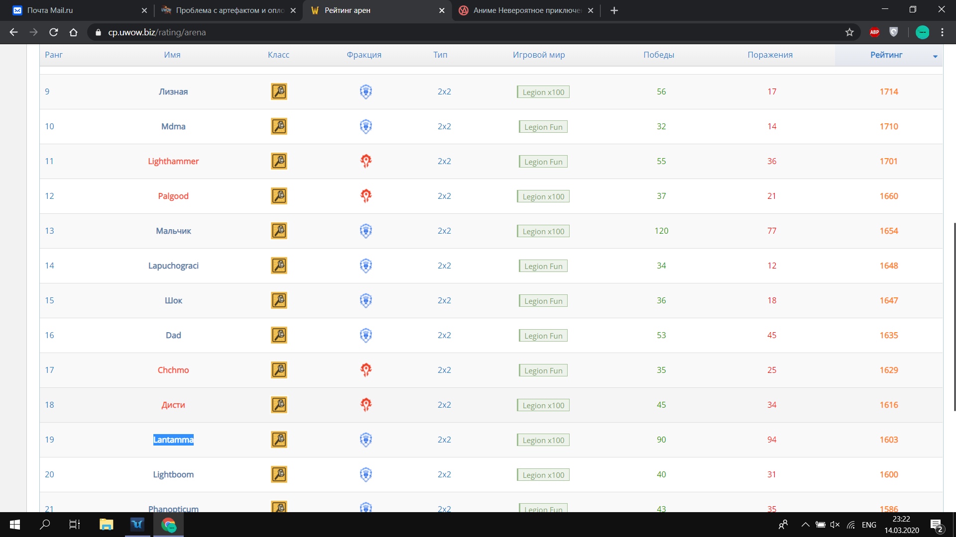| 0009241 | Legion Core | PVP / ПВП | public | 2020-03-19 11:34 | 2020-11-09 17:56 |