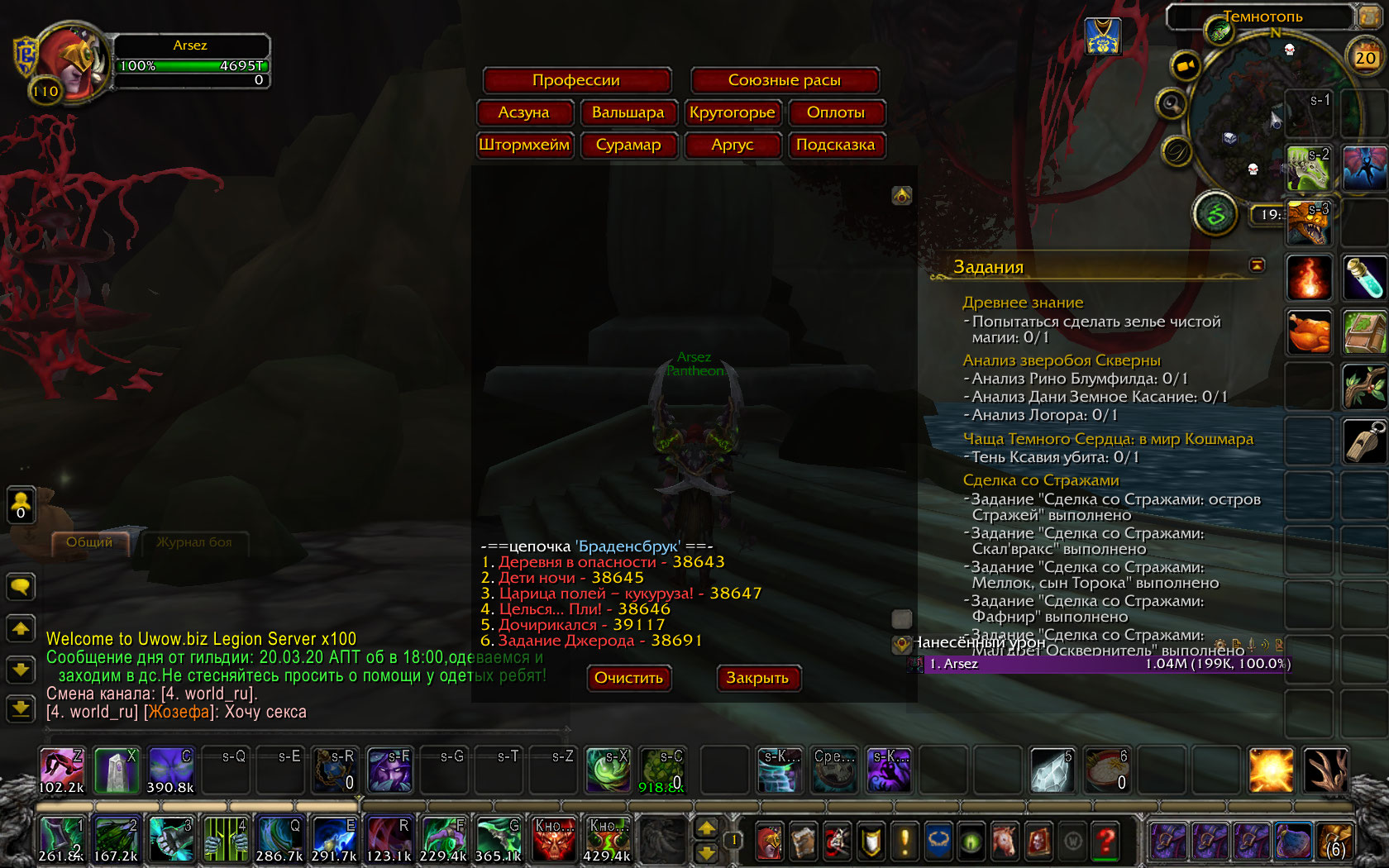 Тут дело в том, что ничего красным не горит, а возле фонтана сейчас чекну, на этом тестере пишет что якобы кв сделан но на самомделе ласт задания нету там фазы этой нет , сейчас возле фонтана буду искать WoWScrnShot_032020_222609.jpg (494,884 bytes) |