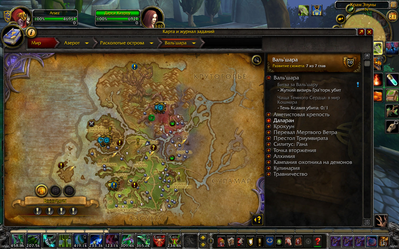 Нет, сделай скрин, что горит красным, выбери там Вальшару. Плюс проверь Тиранду около фонтана, там тоже может стоять( левее твоего второго скрина) |