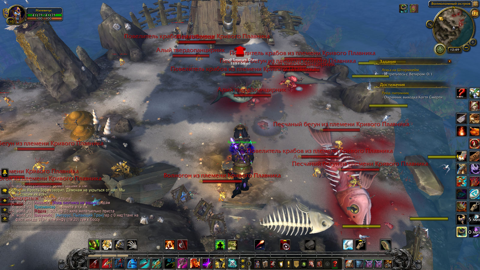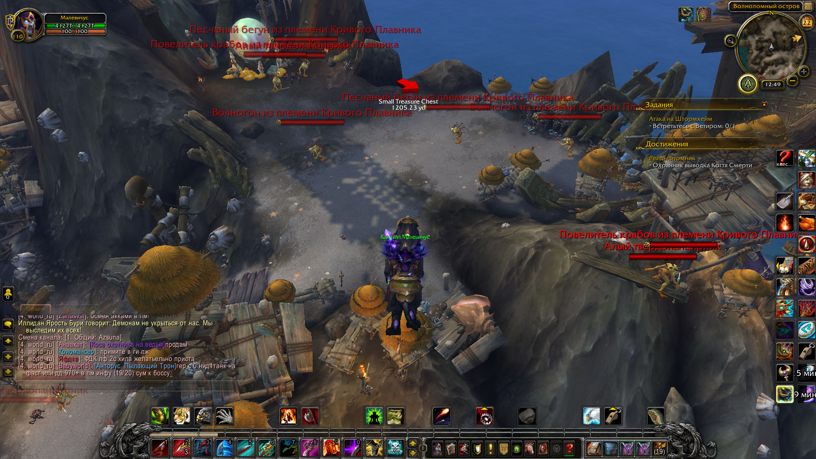 | Description | Итак согласноhttps://www.youtube.com/watch?v=pUx4Bi2I1J8&feature=emb_err_watch_on_yt поимка Бурчаля-белое яйцо мурлока(244447) не составит НИКАКИХ проблем ведь ресаеться оно каждые 20-30 секунд.прилетев туда и попав в пещеру и просидев там почти 4 часа яйцо так и не реснулось.Ну хрен бы с ним пошел добывать 2го мурлока на видео их там на вскидку десяток и бегает и стоит и проч делами занимаеться (не путать с мурлоками аграми и крабами )нужные зелененькие ))зы на скринах видно что НУЖНЫХ мурлоков тоесть Трескунчиков(113440)Там просто нет.Усомнился может где в уголке завалялся устрол ГЕНОЦИД местного населения но так и не нашел как на видео НИ одного https://www.youtube.com/watch?v=sJKzjhV_B0k | ||||