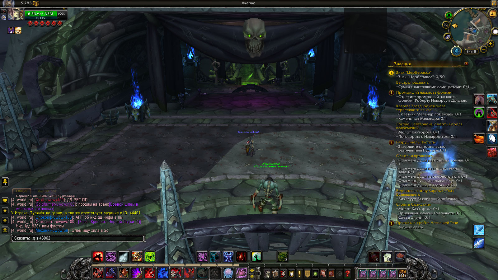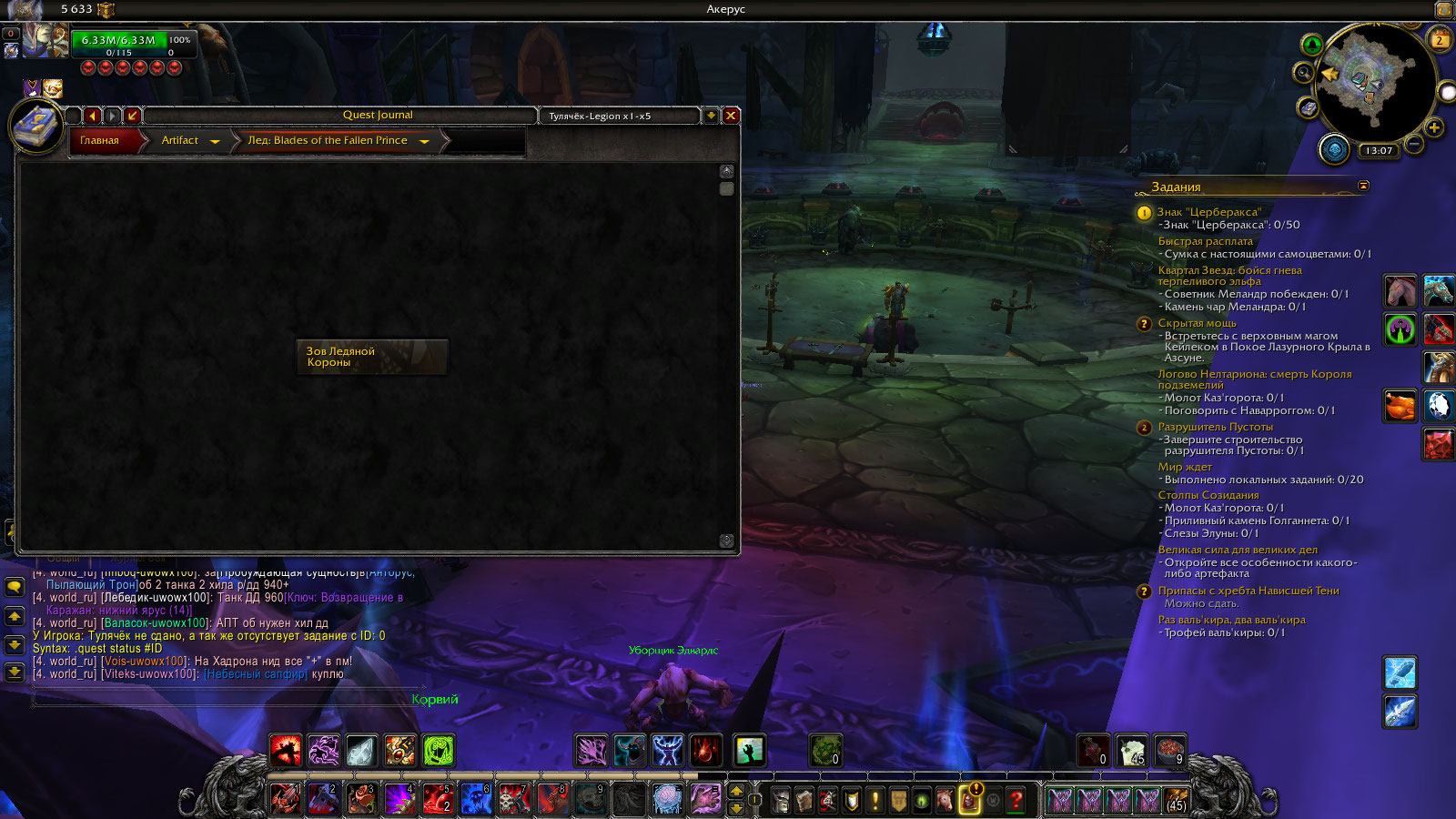 Сделайте скриншот с командами .q s 38990 .q s 40930 .q s 40740 Можете скачать адон BtWQuest: и BtWQuest: Legion и там посмотреть до кого момента у вас пройден оплот и цепочки на артефакт Квесты на артефакт 98. Что бы увидеть их у нпс нужно подойти к нпс и открыть с ним диалог или на мини карте поставить галочку "Простые задания" |