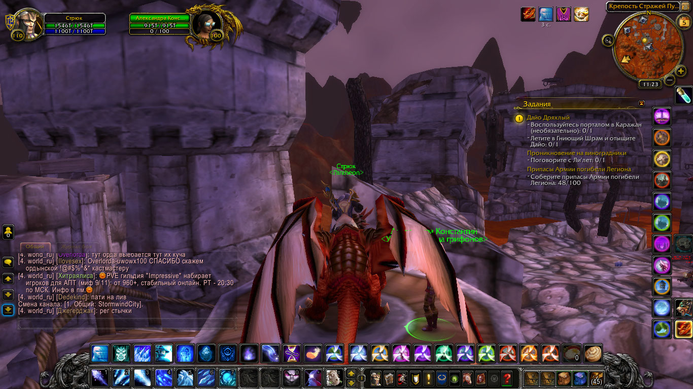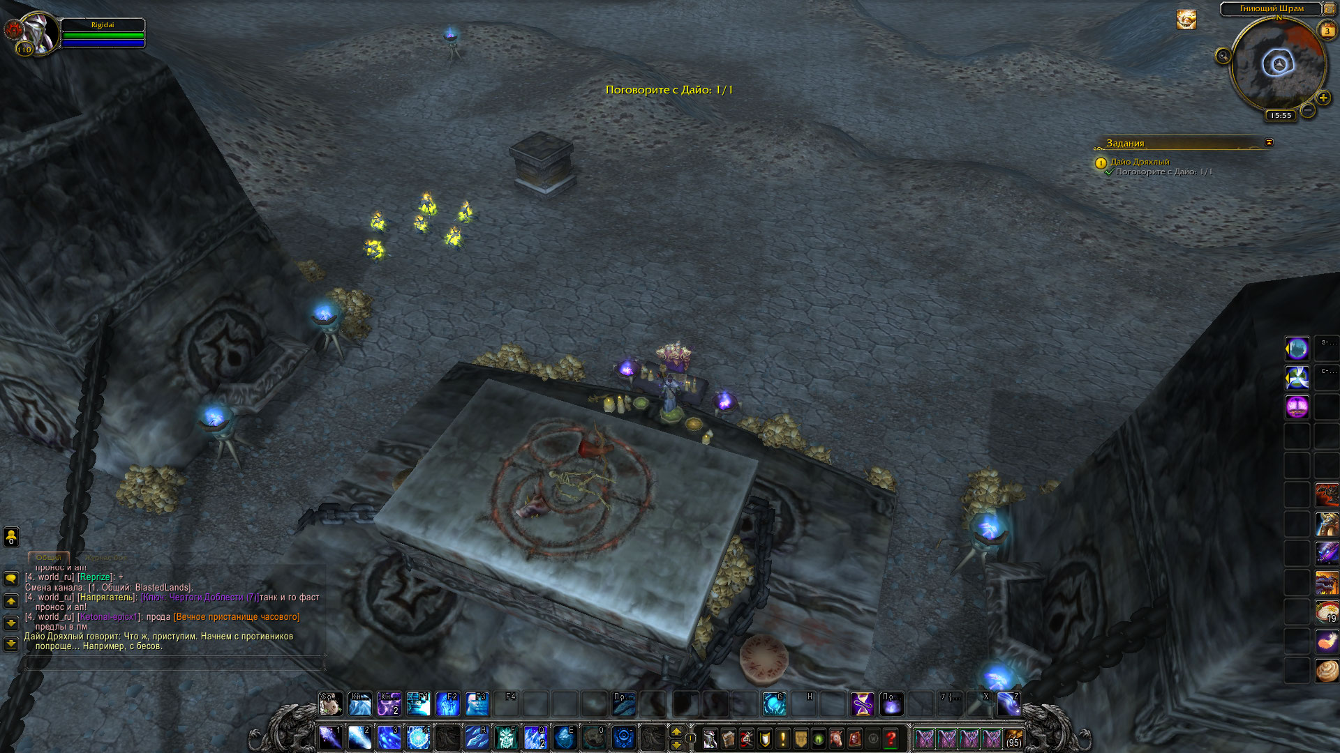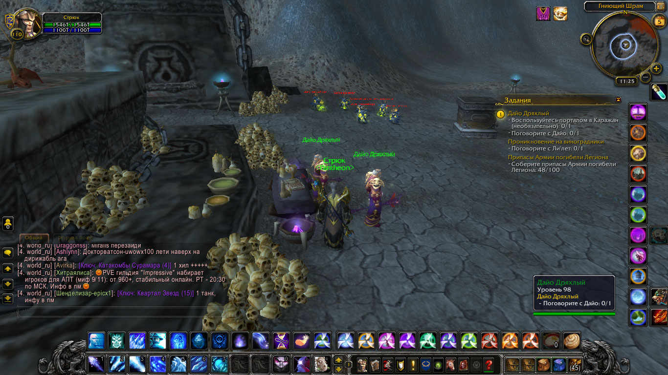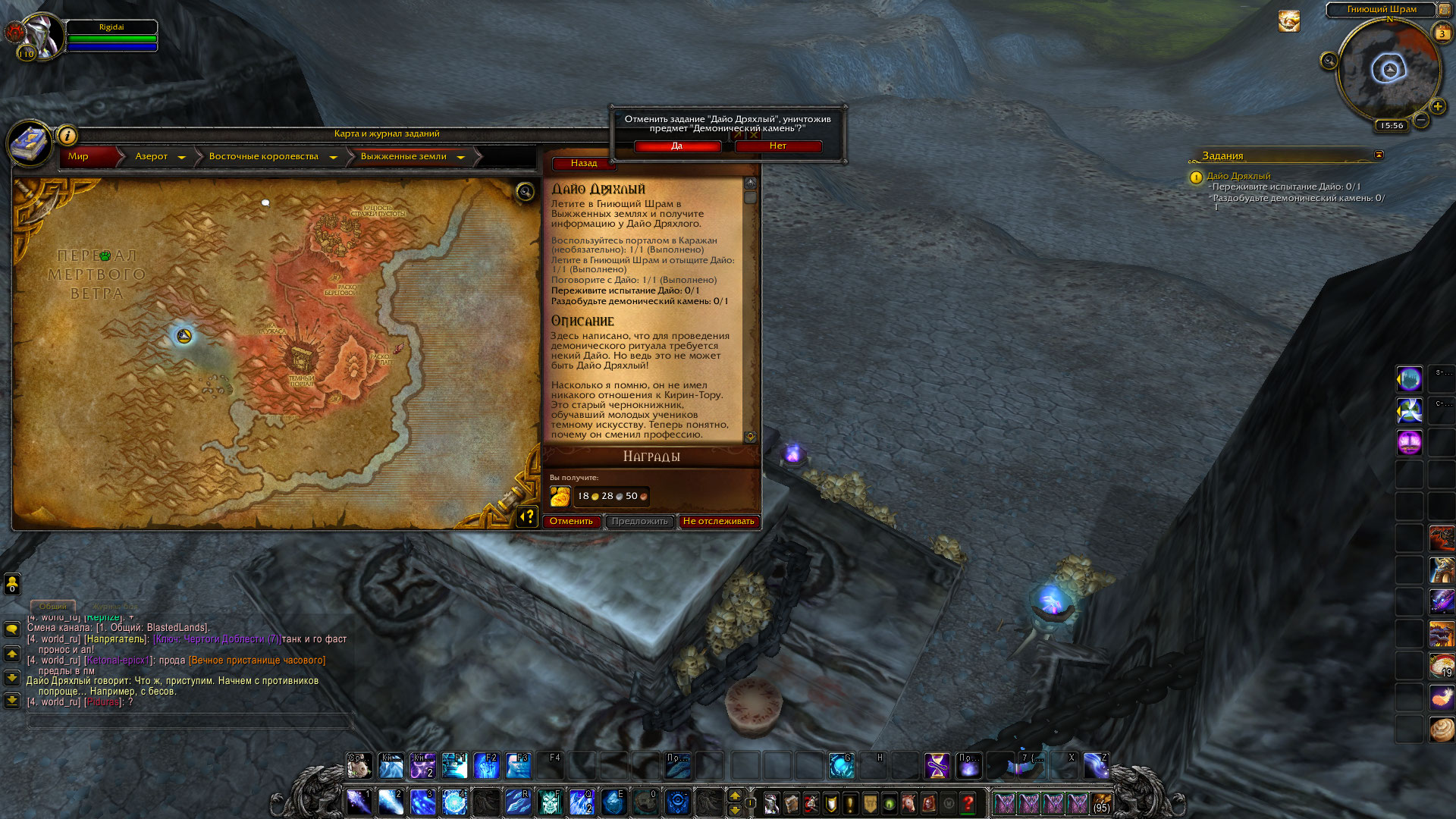 | Steps To Reproduce | Берём квест в оплоте - телепортируемся в Даларан - телепортируемся в Каражан - летим в Гниющий Шрам - говорим с Дайо - натыкаемся на баг. | ||||