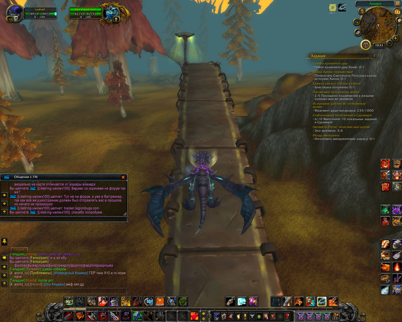| Steps To Reproduce | Попробовал самостоятельно слетать в Азшару в поисках НПС, но там их нет и карта не совпадает с данным временным этапом в патче. Был написан тикет, после чего ГМ перенаправил для решения проблемы сюда | ||||
