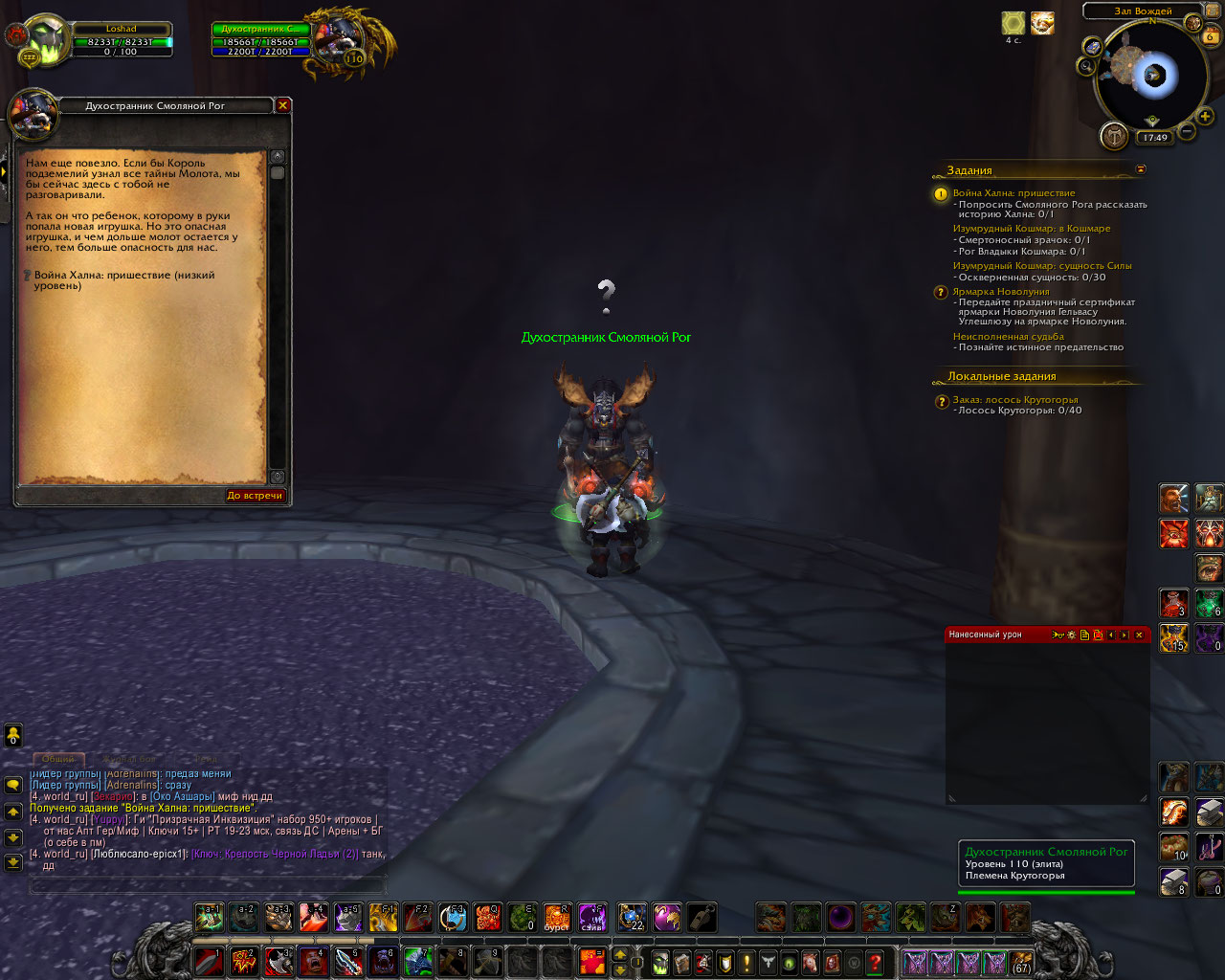 | Description | Здравствуйте. После взятия кв у НПС должен появится диалог который отправляет в Азшару и там доделываю кв. Как можно увидеть с фото - диалога нет, при нажатии на кв нельзя завершить или продолжить. | ||||