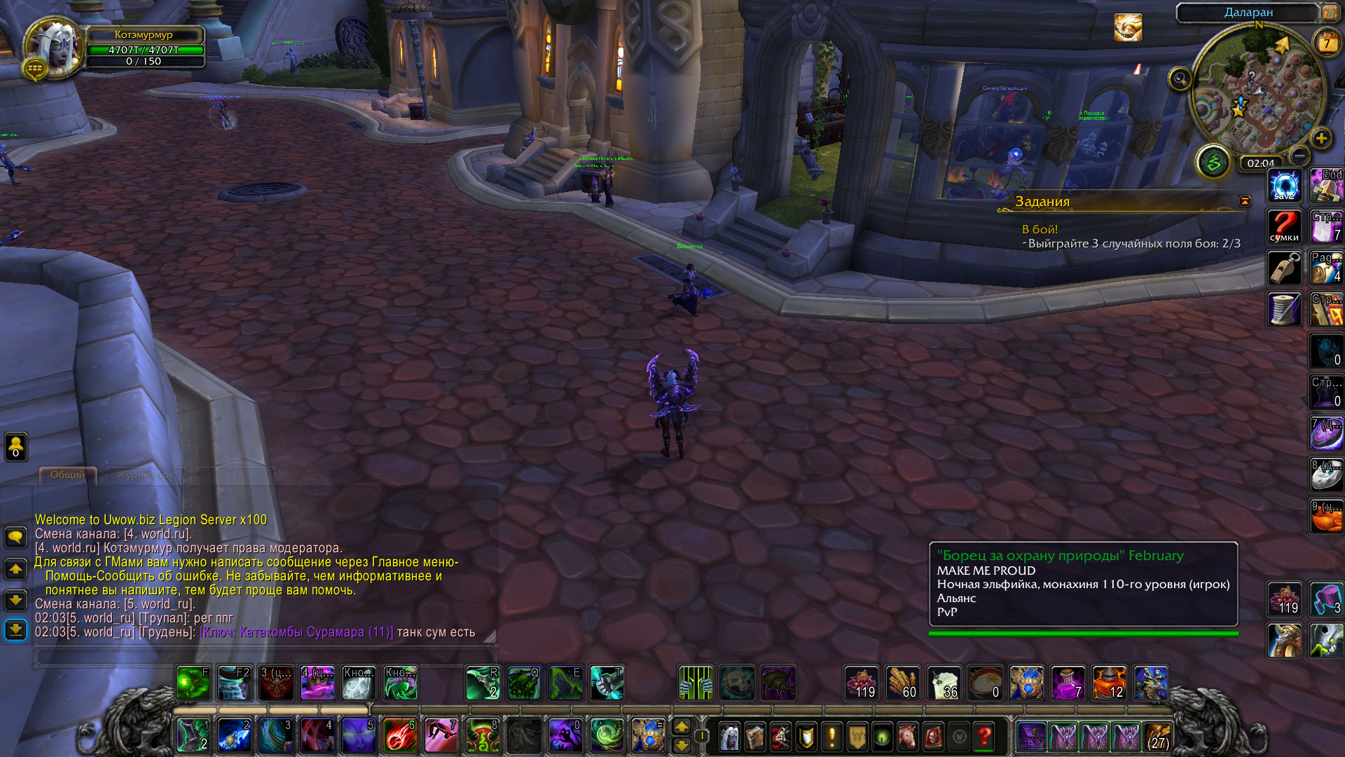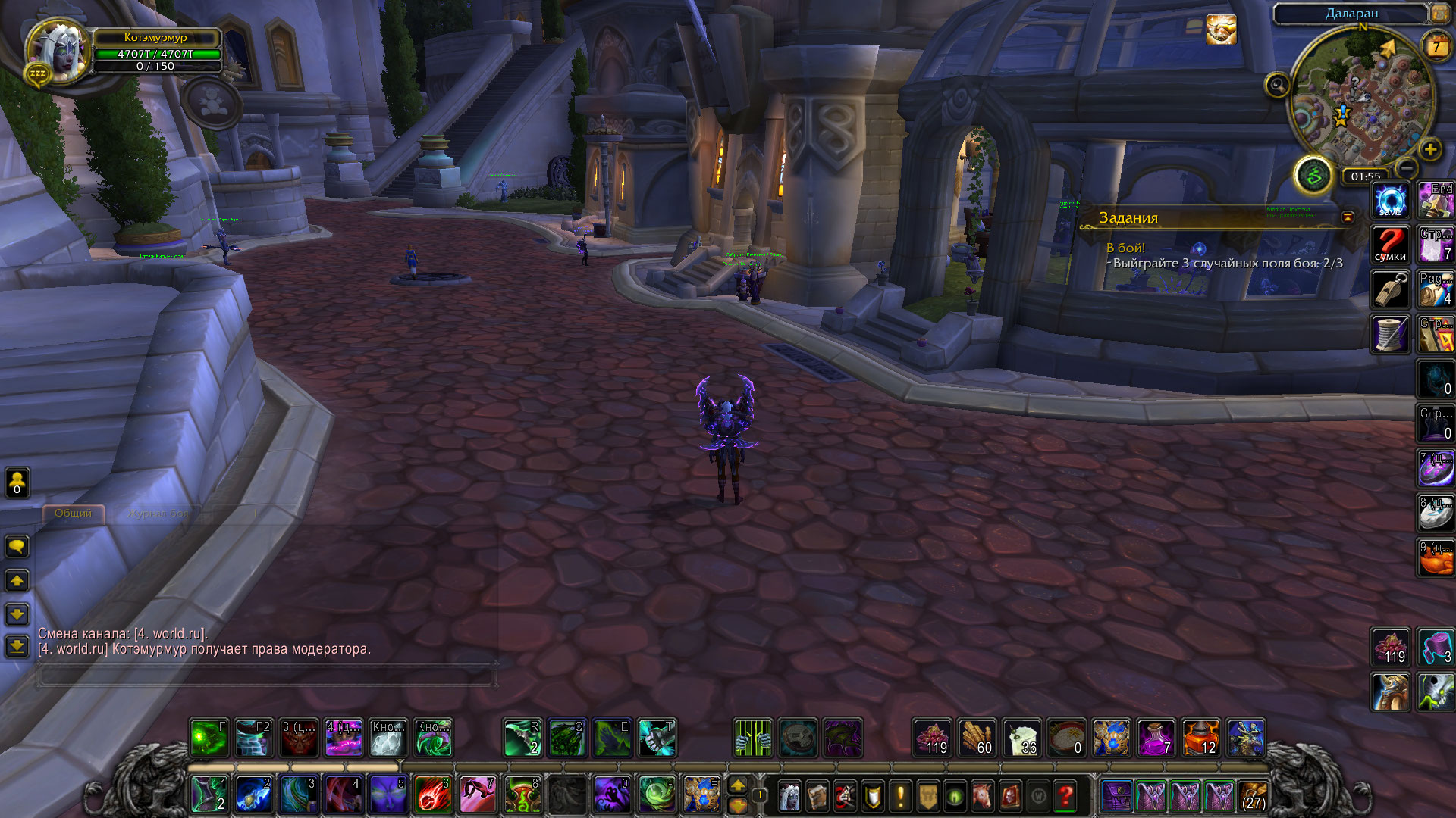 переустановила клиент - зашла, чат есть и даже больше) у меня прям давняя мечта осуществилась) а можно так и оставить? у меня, как никак, 15 лет опыта игры в вов, я готова оправдать возложенные на меня обязанности)) ладно, шутки шутками, но я, походу, создала отдельный чат /join world.ru (т.к. я набирала раньше /join world.ru) и заделалась там модератором, наверное, потому, что я там одна. А чатов теперь у меня 2: 4. world.ru и 5. world_ru (в 5-й я сама добавилась посредством команды /join world_ru) что делать? WoWScrnShot_040820_020440.jpg (485,331 bytes) WoWScrnShot_040820_020358.jpg (460,038 bytes) |