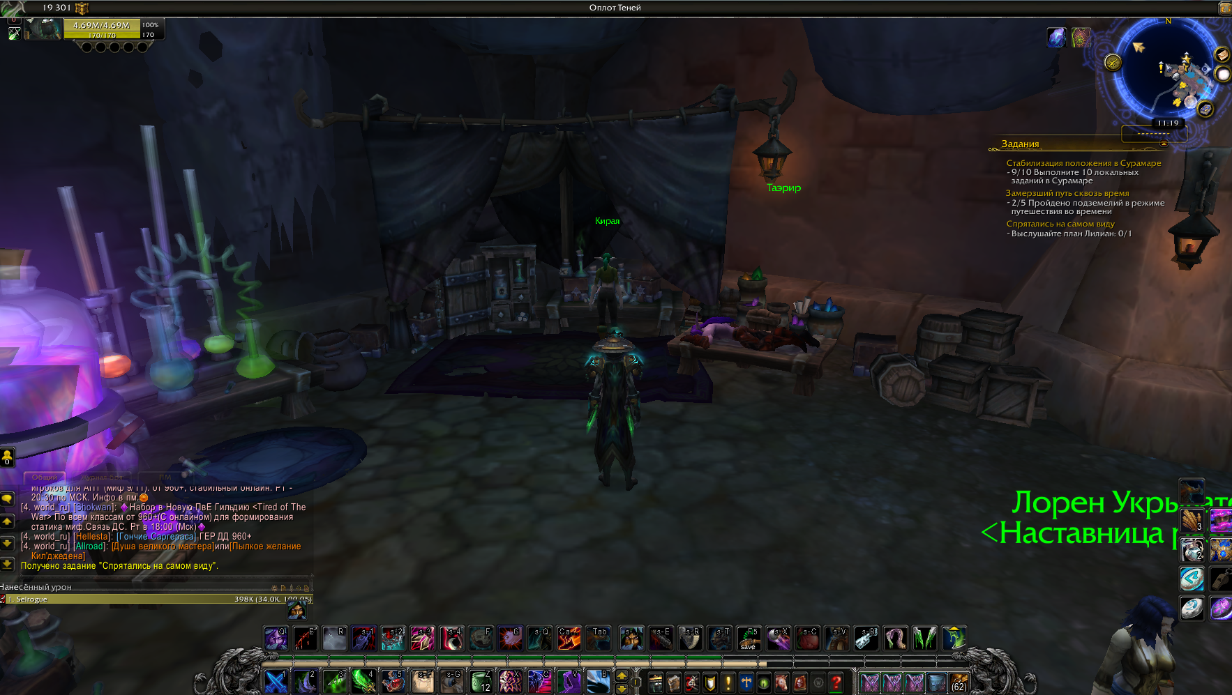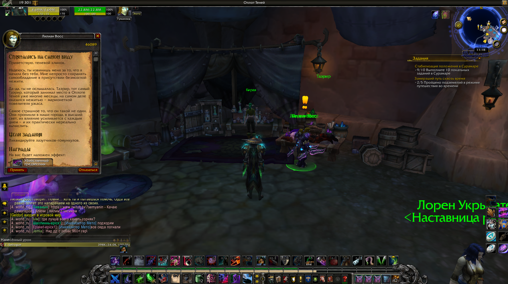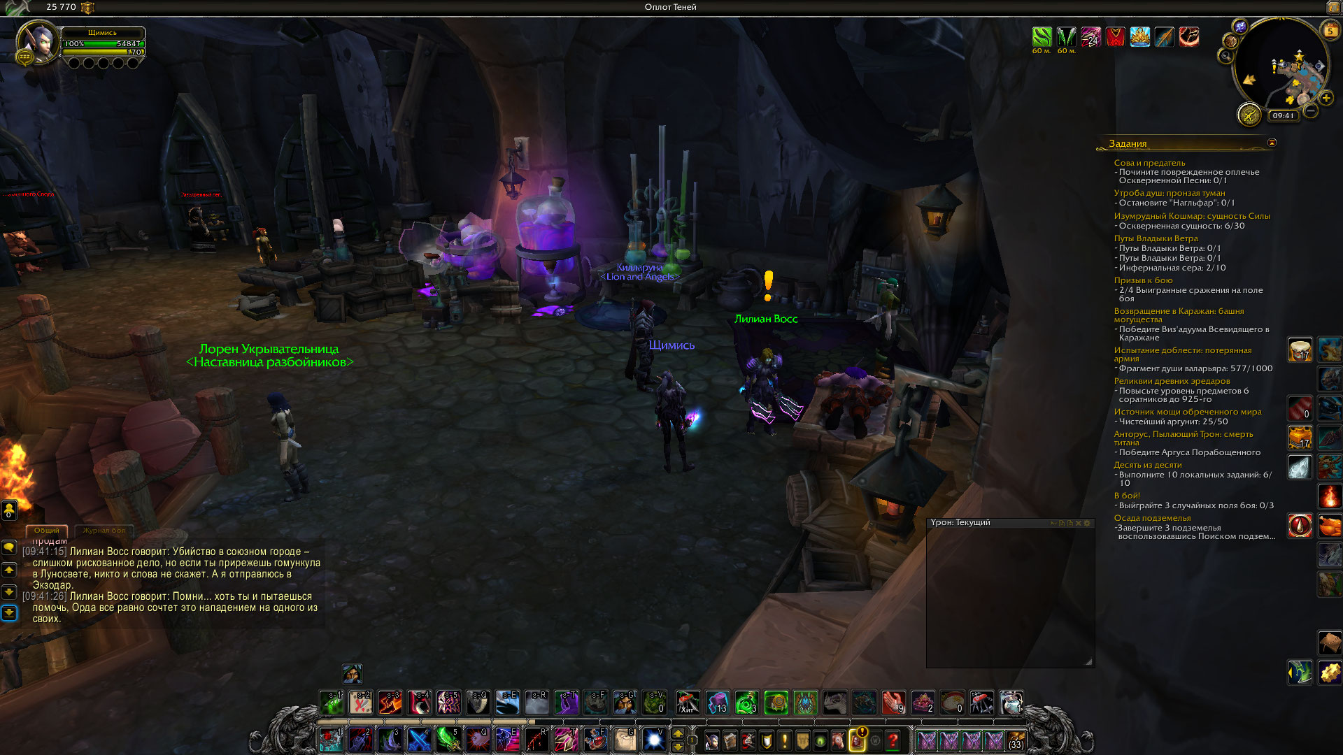 | Description | Классовый квест разбойников за Альянс "Спрятались на самом виду" id 46089. При взятии квеста Лилиан Восс вместо того, чтобы рассказать план, исчезает, а требование выслушать план Лилиан не засчитывается, если же просто убить всех нужных для выполения квеста нпс в столицах Орды и вернуться в оплот теней, Лилиан Восс всё ещё не появляется и нет возможности сдать квест, в том числе из-за того что не выполнена часть выслушать план Лилиан Восс. | ||||