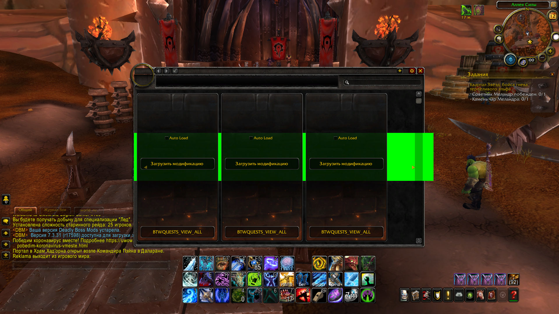 https://www.curseforge.com/wow/addons/btw-quests - version v1.1.3 from Jul 7, 2018 for 7.3.5 https://www.curseforge.com/wow/addons/btw-quests-legion version v2 from Jul 4, 2018 for 7.3.5 https://www.curseforge.com/wow/addons/btw-quests-legion/download/2579240 https://www.curseforge.com/wow/addons/btw-quests/download/2580238 подходящая для наших серверов версия аддона , скачивать надо оба файла, распаковывать в папку /Addons в клиенте. Другие подобные аддоны не мешают. |