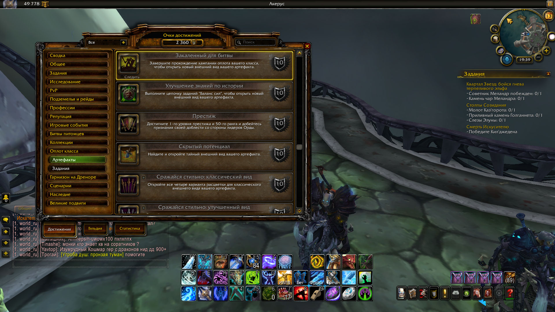 Скачайте аддон что бы мы нашли проблему. Отключите все адоны кроме этого на время. Он должен работать Давайте по порядку https://ru.wowhead.com/achievement=10746/ скрин что достижения нету. У вас открыт 3 релик в артефакте? Скрин с командой .q s 43407 Персонаж у вас перенесенный? AddOns.rar (2,212,744 bytes) |