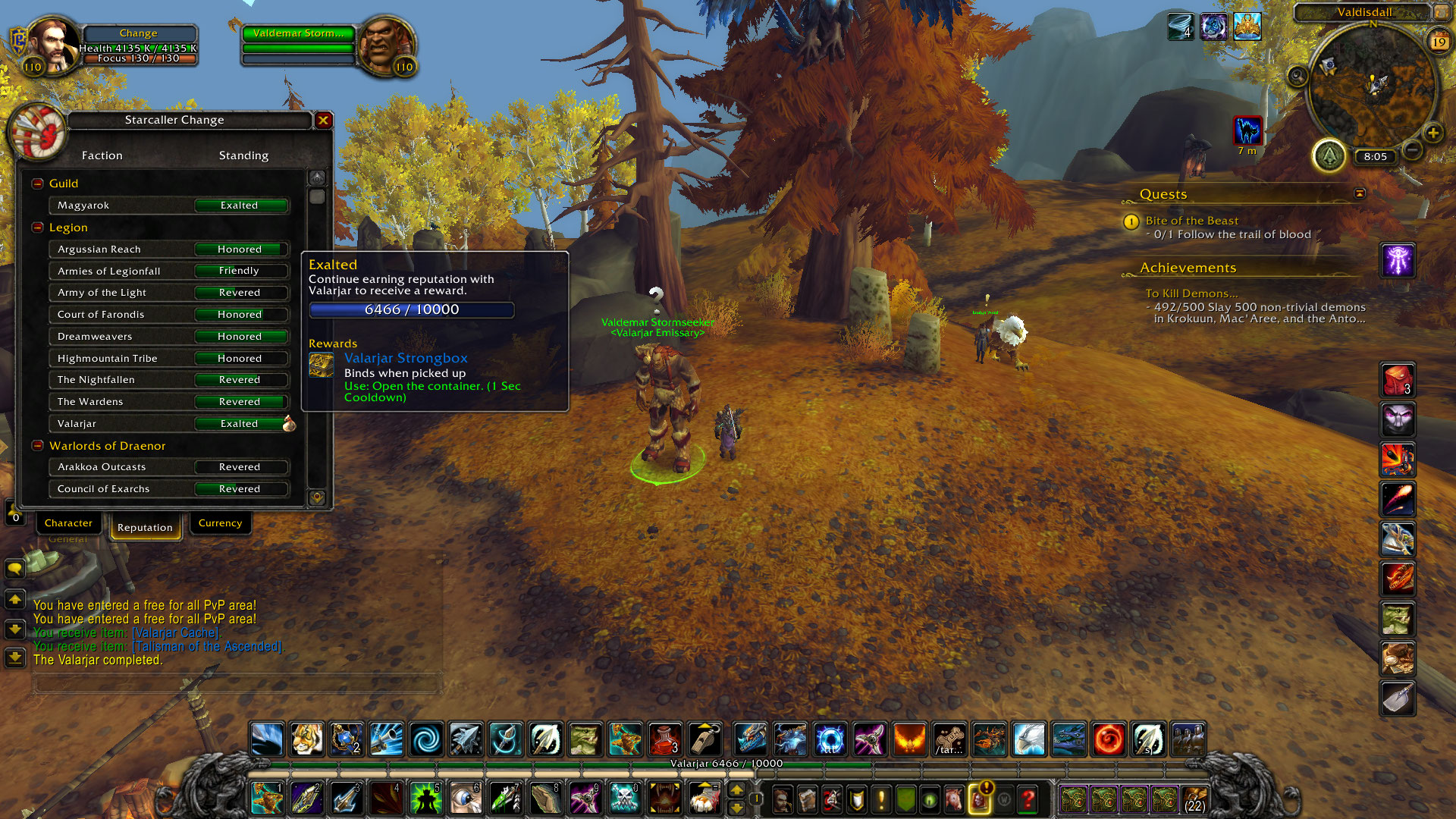 I am attaching further proof that the rates are not x5 for emissary qeusts. As you can see the quest for completing 4 valajar world quests https://www.wowhead.com/quest=42234/the-valarjar awards 1500 rep with them on retail. On my screenshots you can see that my rep goes from 4966 to 6466 after completing it or that's 1500 rep just like on retail. Oerwise I should have gotten 1500x5=7500 rep with them, if the increased rep worked. Again, I play on Argus x100 |