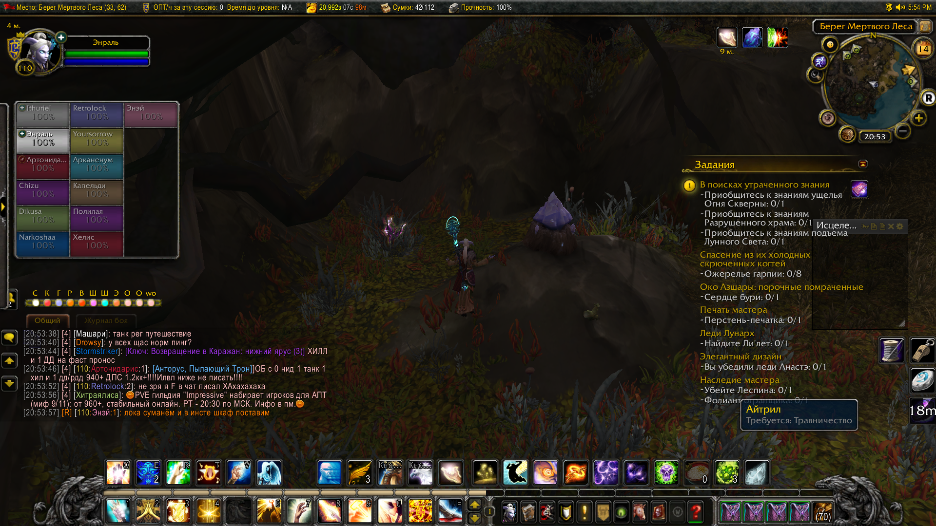Действительно, помогло отключение Каменя поиска маны( из Сурамара ). Аддонов никаких не стоит, поиск трав включен. |