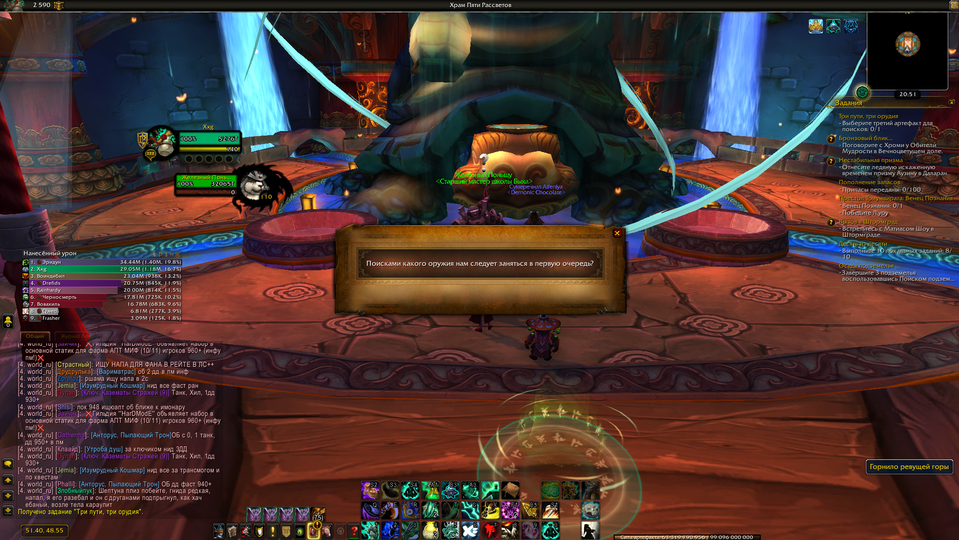 | Description | Квест должен давать выбор артефакта. wowhead - https://ru.wowhead.com/quest=44424/три-пути-три-орудия | ||||