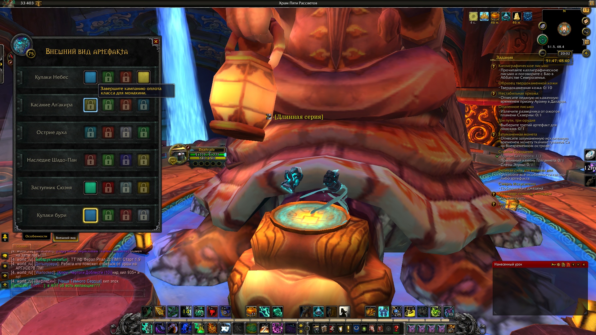 Если вы мне так не верите, то прошу, вот подтверждение моих слов: https://youtu.be/gXhLqeCKpR0?t=1158 - игрок взял квест на выбор первого артефакта https://youtu.be/gXhLqeCKpR0?t=8445 - человек выполнил последний квест из кампании оплота . Это на 2 часах 20 минутах и примерно 45 секундах https://youtu.be/gXhLqeCKpR0?t=10264 - и тут человек только идет выполнять квесты на 2 артефакт. Если всё равно не верите, то я не поленюсь вставить скрины из аддона по кампании оплота на монаха: http://egammi.net/image/SaSW http://egammi.net/image/SaS2 http://egammi.net/image/SaSD http://egammi.net/image/SaSF http://egammi.net/image/SaSd http://egammi.net/image/SaqH |