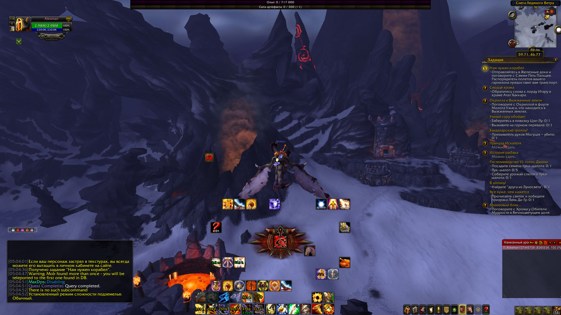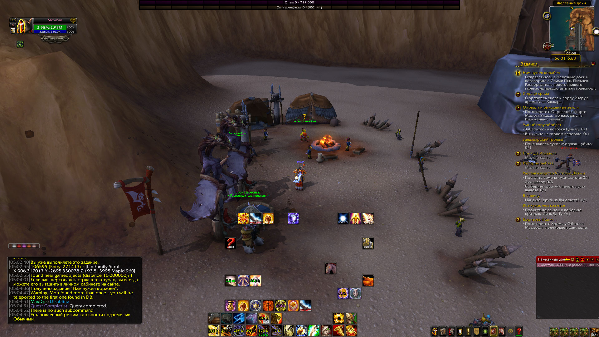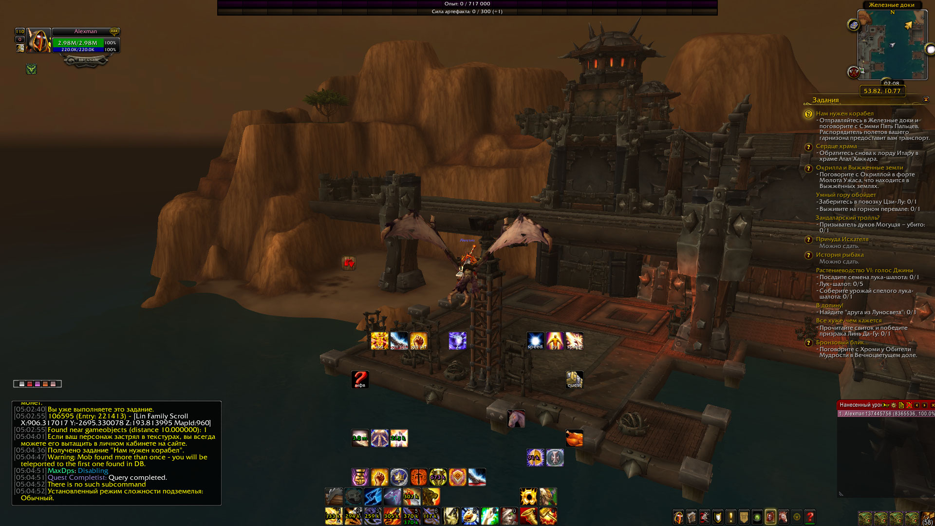 Alexman - чистка кэша везде или починка или еще что-то - никак не поможет, просто игроку надо попросить летающего уже в дреноре человека довезти туда, ну или можно самостоятельно по воде добраться с правой стороны от Железных доков. Квест чинить надо разработчикам, потому что такой баг у всех с кв к сожалению( |