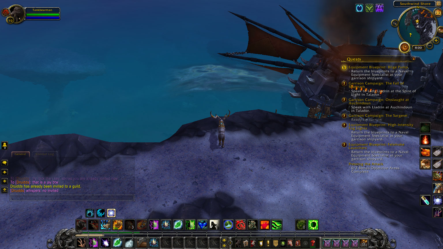 | Steps To Reproduce | Complete the quest by going south west of your garrison. Pay the 150 gold and resources, and you will get a cinematic. When this is over you will be in Tanaan Jungle. The garrison will still not have a dock when you return. | ||||