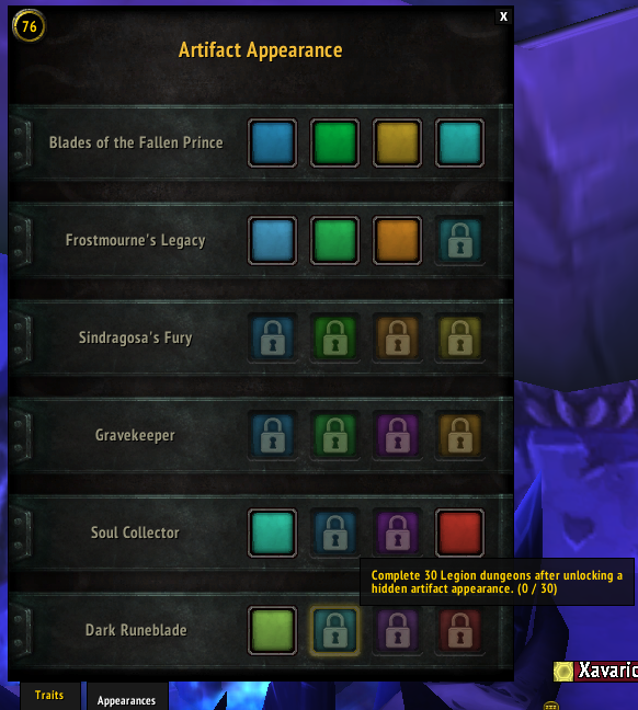 | Description | I already unlocked Dark Runeblade appearance but to unlock the second colour it says I need to complete 30 Legion dungeons. I did probably more than 30 but I can't see any progress. It would be better to see my progress to know how many I exactly did. Also, is it even working? If yes, then would you please check my progress if it is possible to see and tell me. Virtuozzo-argusx1 | ||||