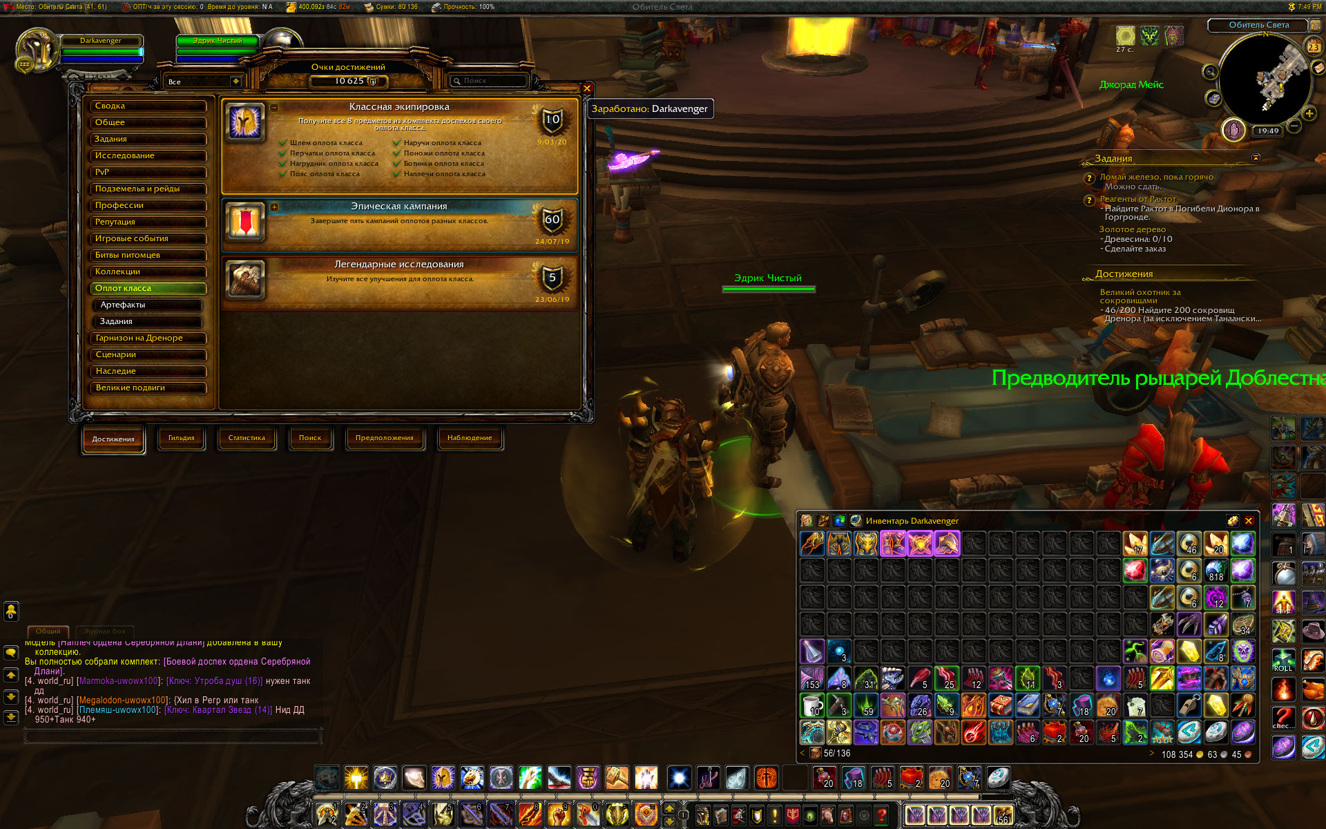 | Steps To Reproduce | Вся цепочка квестов оплота класса,недоступность цепочки "Баланс Сил" , в рюкзаке лежит нагрудник который незасчитывает в ачиву! | ||||
